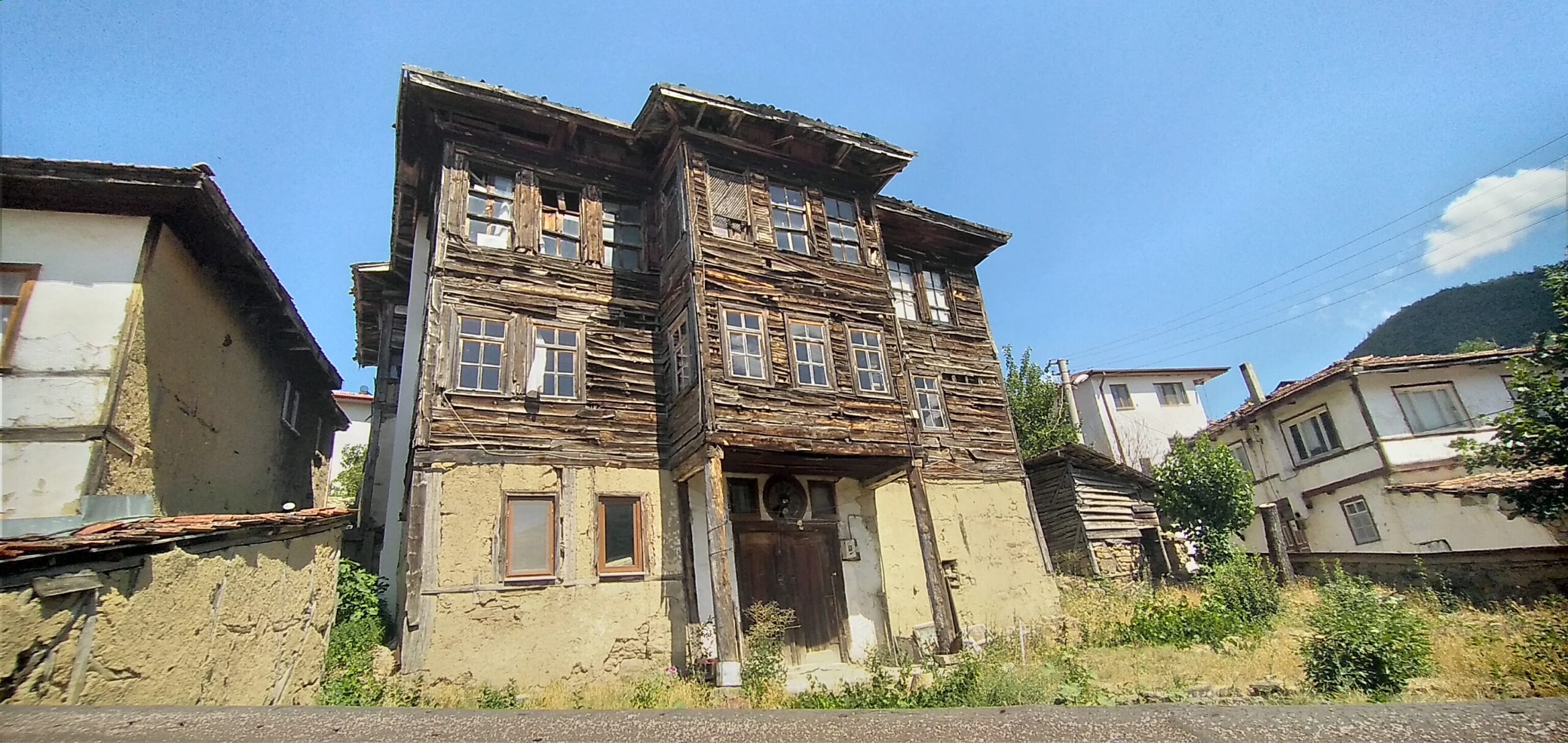 어도비로 채우고 목조 프레임으로 만든 3층짜리 저택입니다.