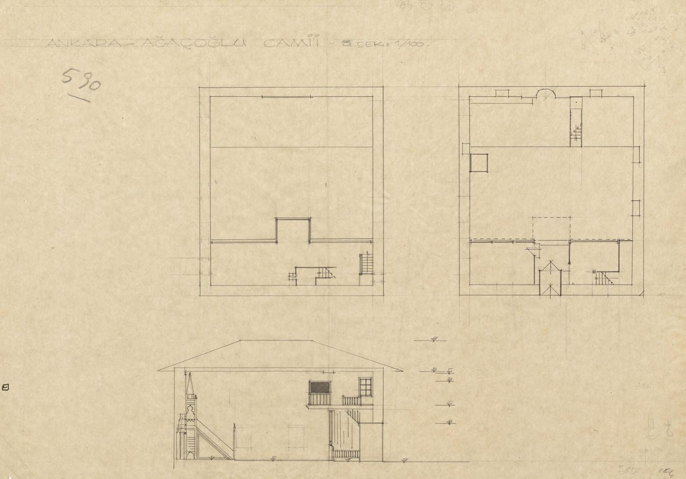 Ağaçoğlu Camii plan ve kesit çizimleri • SALT Araştırma, Ülgen Ailesi Arşivi • Kaynak • 🔎
