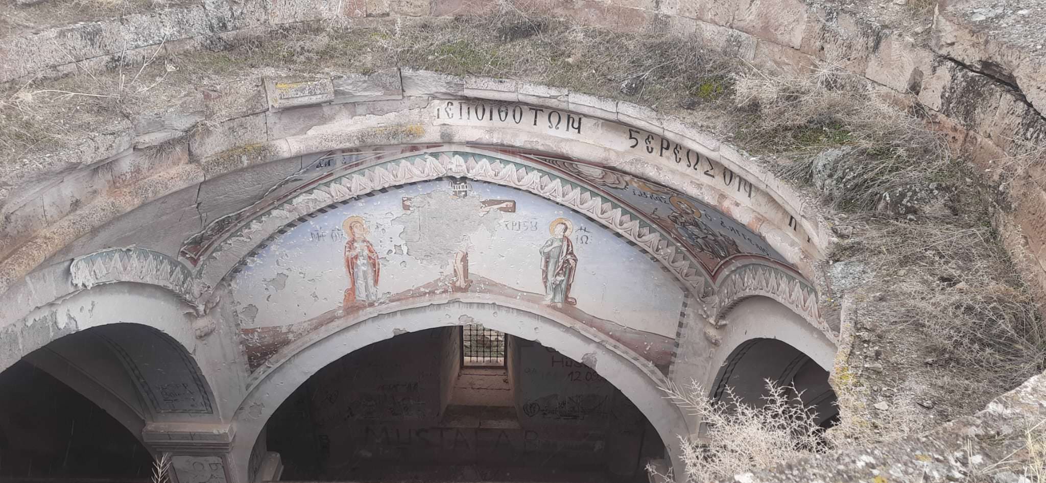 Yapının tamamında düzgün kesme taş kullanılmıştır. Yapının kitabesi yerinde değildir. Freskolardan birinin yanında 1849 tarihi bulunmaktadır. Kilisenin içinde okunamamış Rumca bir kitabe yer almaktadır.