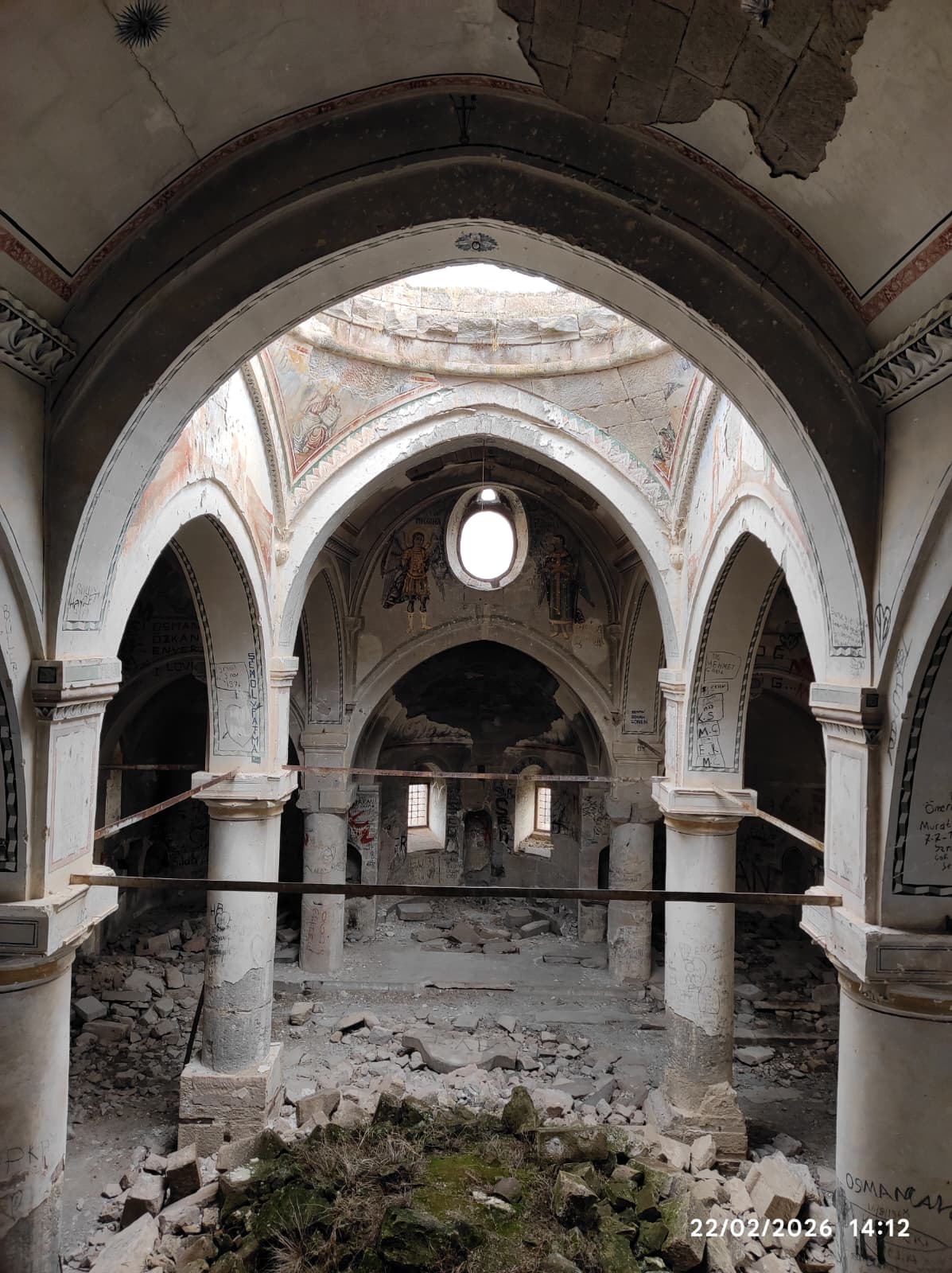 Yapı, doğu–batı doğrultuda inşa edilmiş bir kilisedir. Kilise üç nefli olarak düzenlenmiştir. Orta nef, yan neflerden daha geniş planlanmış ve ortasına günümüzde yıkılmış durumda olan bir kubbe yapılmıştır. Yapının batısında, beş gözlü ve iki katlı olarak düzenlenmiş bir narteks bulunmaktadır. Narteks revaklarını oluşturan kemerler bodur tutulmuş taştan ayaklara oturmaktadır. Narteksin tamamı beşik tonozla örtülüdür. Günümüzde dış duvarlar kısmen sağlamdır. İç mekânda sıva ve freskolar dökülmüş durumdadır. Ana kubbe yıkılmıştır.