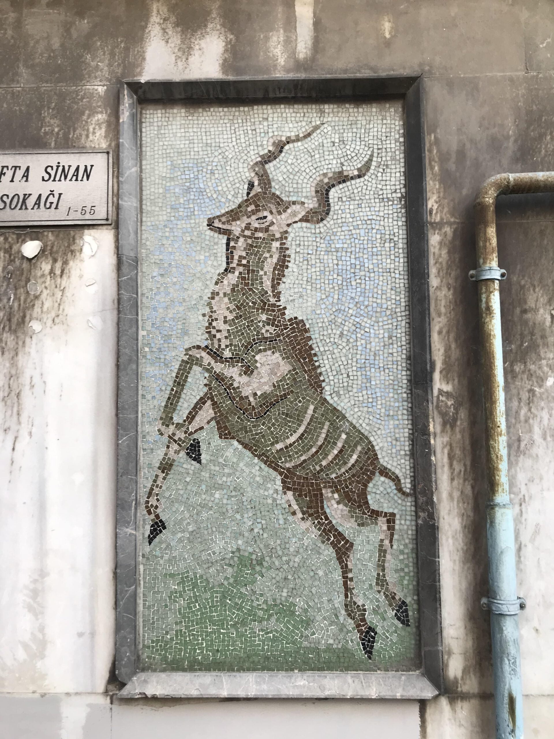 Fatih, Molla Gürani Mahallesi, Softa Sinan Sokağı’nda, 5/1 numaralı Albayrak Apartmanı’nın duvarında yer alan pano, geyik tasvirli mozaiktir.