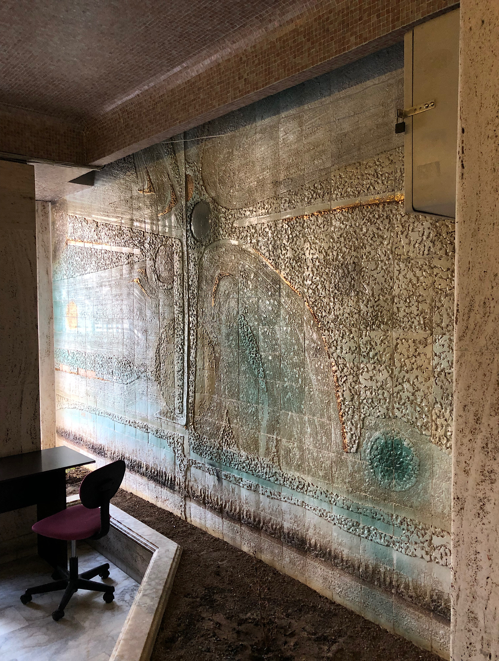 Sanatçı Cevdet Altuğ’un eseri seramik pano apartmanın içinde zemin katta bulunmaktadır. Pano üzerinde sanatçı imzası ve 1977 tarihi bulunmaktadır.