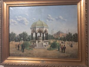 “Alman Kaiser’i Wilhelm II 1898 yılı sonbaharında Osmanlılar’ın hükümdarı II. Abdülhamid nezdinde ziyaretinin şükran hatırası olarak bu çeşmeyi yaptırdı.”