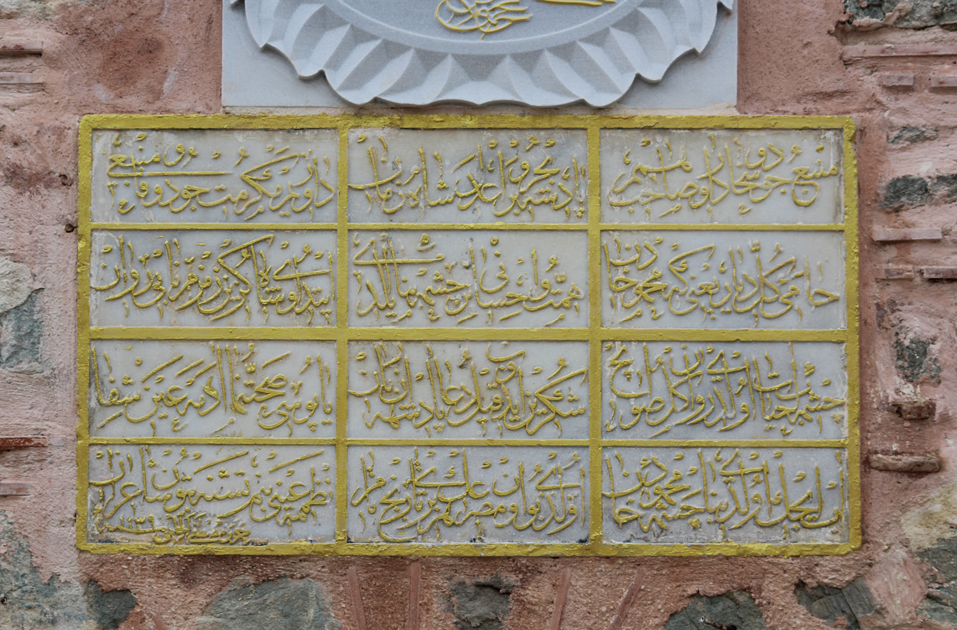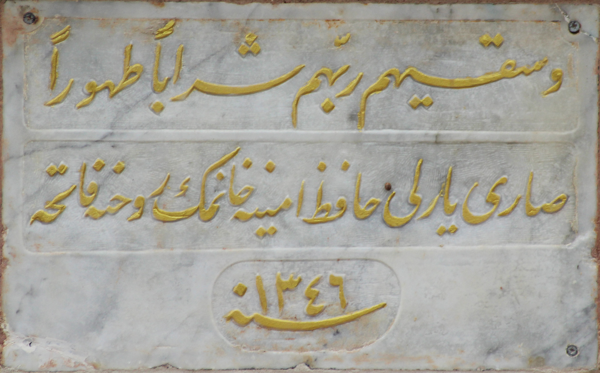 Birinci kitabe olan tarih kitabesinin metni latinize olarak şöyledir:[1]
