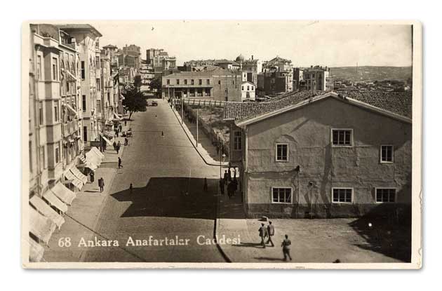 Şehremaneti, Ankara (sağdaki bina. Arkasındaki boşluk 1929 Tahtakale Yangını'nda yok olan bölge. Bu alanın bir bölümüne bugünkü Hal Binası kuruldu.) • Cumhuriyetin Başkenti • 1938 • Kaynak • 🔎