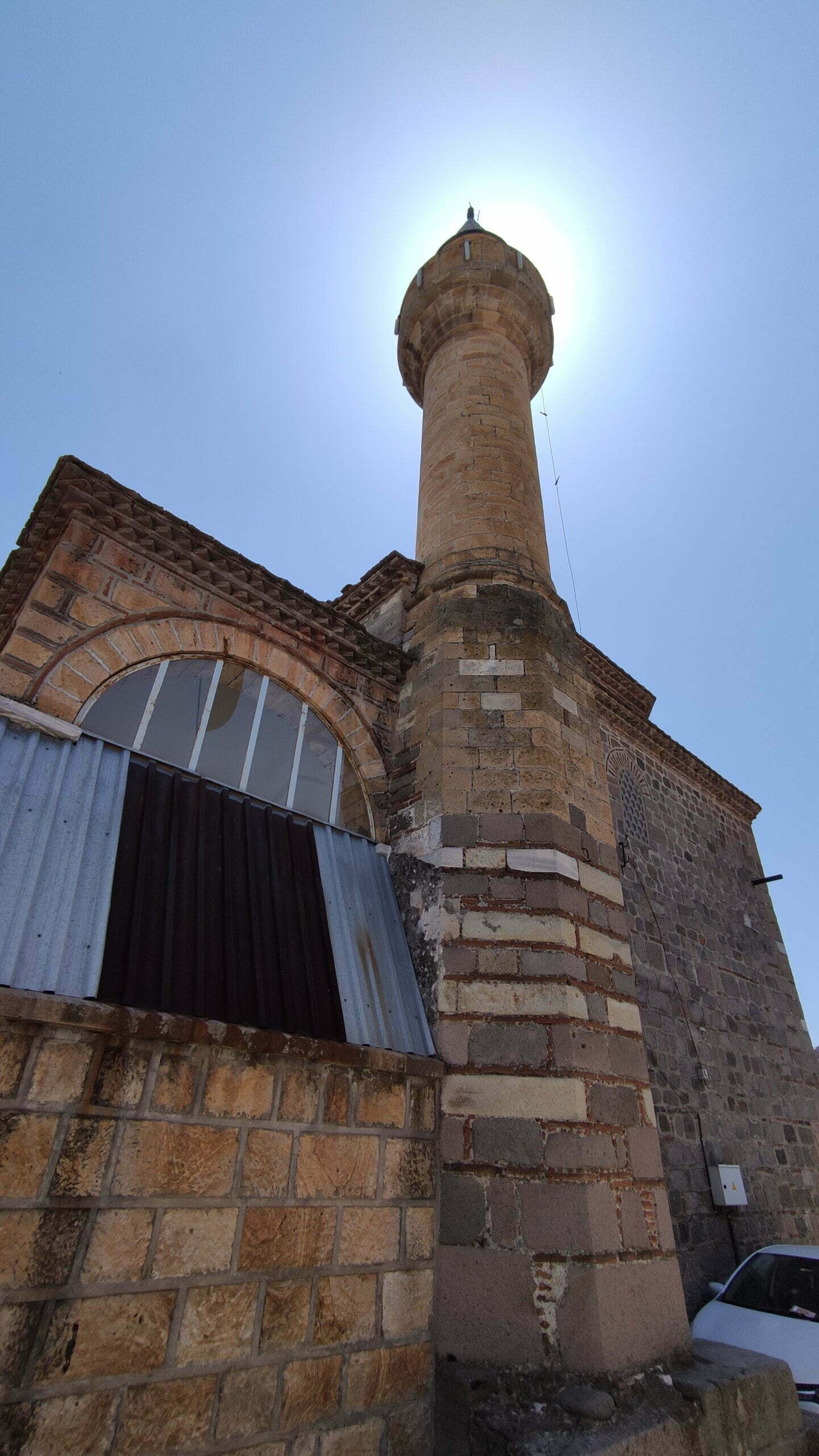 Kitabesine göre 1543 tarihinde Ali oğlu Hacı Ahmet tarafından yaptırılmıştır. Harimi sekizgen kasnağa oturan tek kubbeyle örtülü ve kare planlıdır. Avlusundaki çeşmenin yalağı lahitten devşirmedir. Son cemaat yeri üç kubbeli olup bunlardan batıda olanı Osman Bayatlı’nın verdiği bilgiye göre 1895 depreminde üzerine çöken minareyle birlikte yıkılmış ve ahşap örtü yapılmıştır. Günümüzde ahşap örtü olmayıp ilk halini yansıtacak şekle döndürülmüştür.