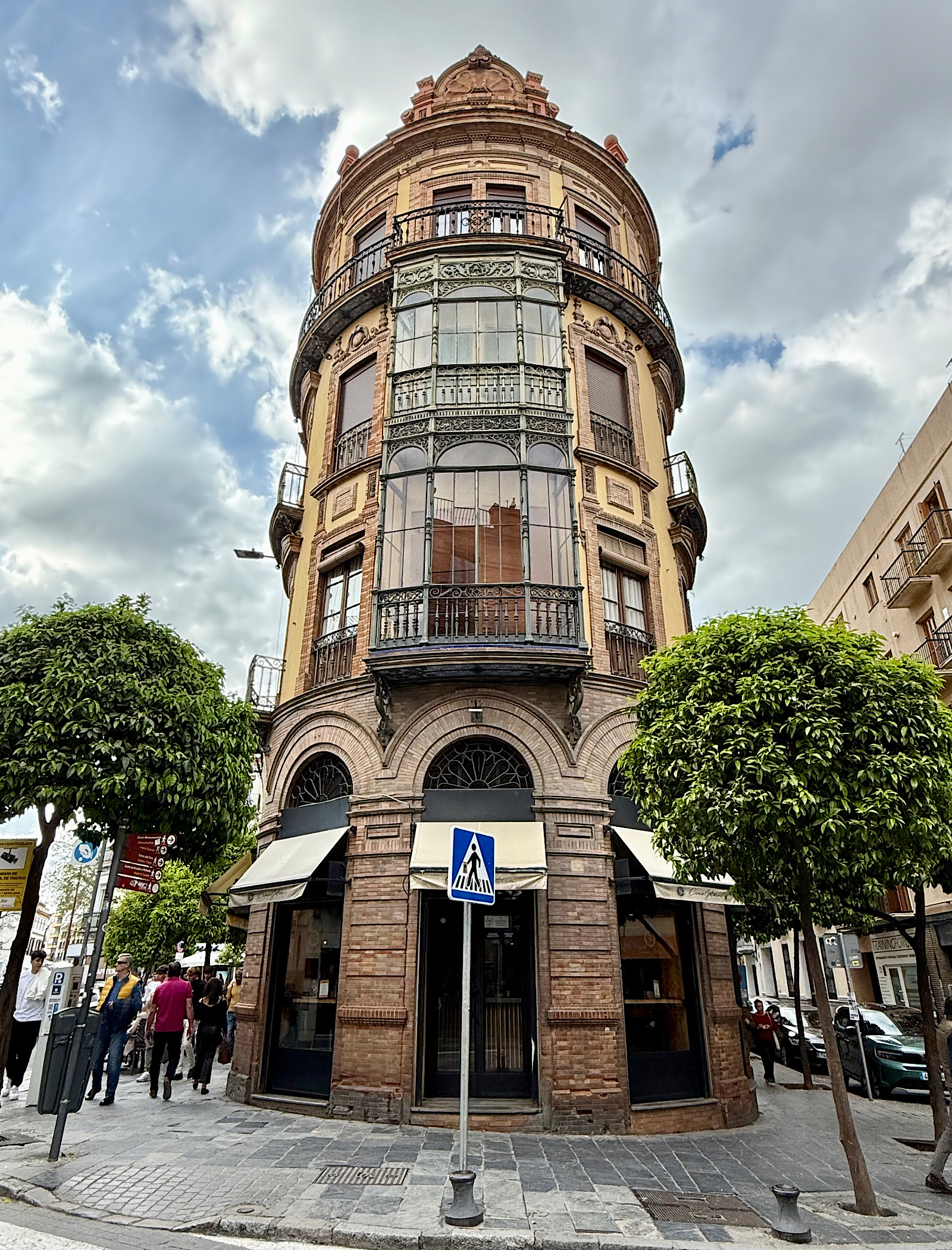 1920 yılında inşa edilmiş zemin üzeri üç katlı, birinci ve ikinci katında çıkmalar bulunan İspanyol artnouveau bezemeli köşe apartmanıdır. Mimarı bilinmemektedir.