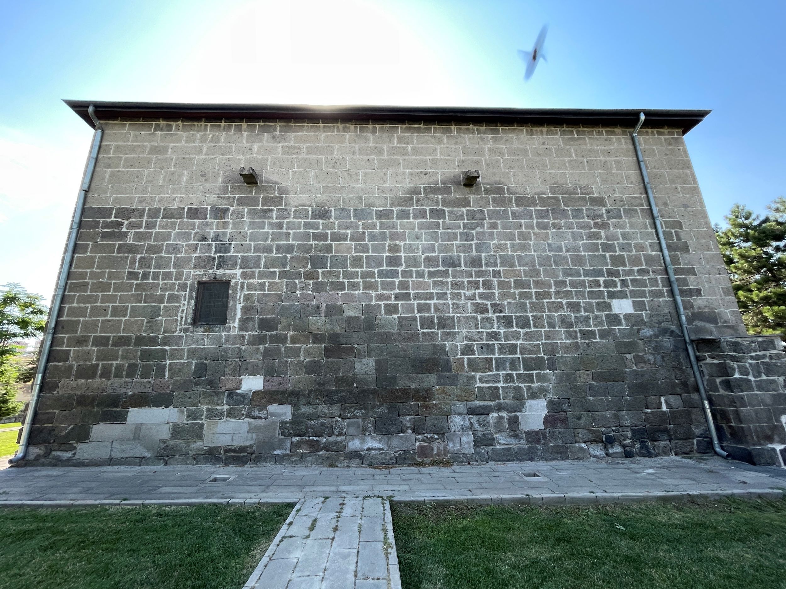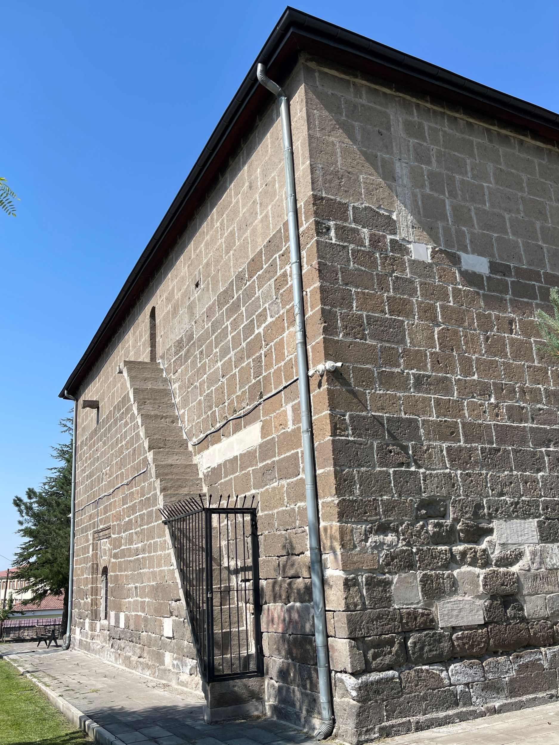 Doğu cephesinin güney ucunda düz lentolu bir pencere yer alırken, üst kısımdaki taş çörtenler yapının yağmur suyu tahliyesi için düzenlenmiş özgün detaylardır. Bu cephede de farklı dönemlere ait onarım izleri görülmektedir. Batı cephesinde ise kuzeyde profilli silmelerle çerçevelenmiş yuvarlak kemerli bir pencere; güney kısmında ise dama çıkışı sağlayan, profilli süslemelere sahip 19 basamaklı taş merdiven yer almaktadır. Merdiven, son onarımlarda eklenmiş yuvarlak kemerli bir kapıyla sonuçlanır.