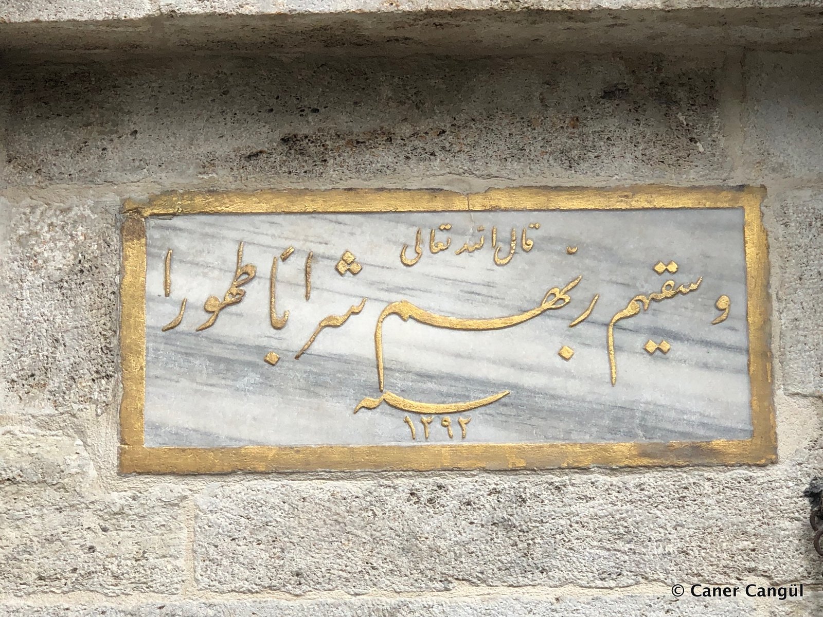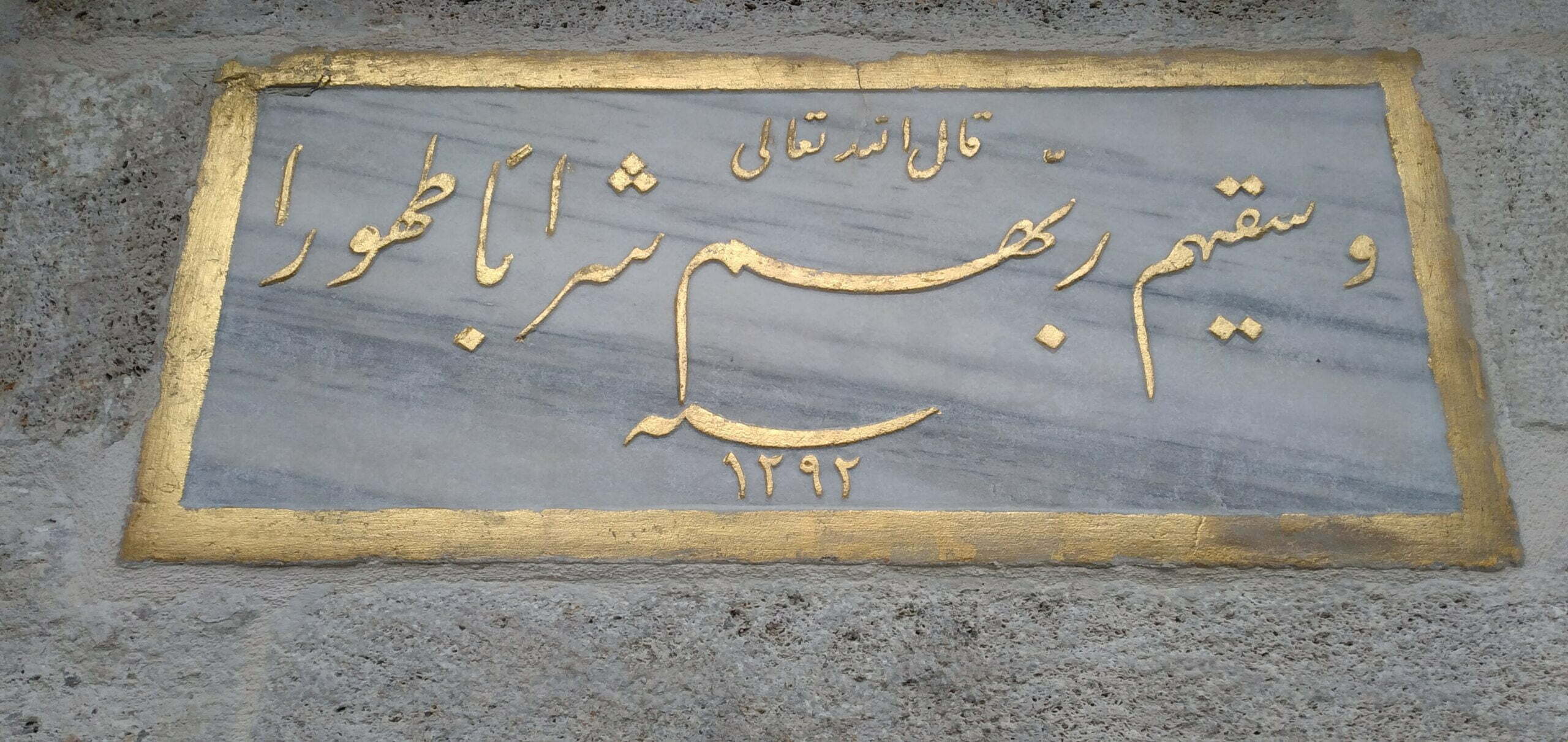 Kitabe taşında “Kalellahü teala ve sekahüm rabbihüm şeraben tahura” (1292) yazısı vardır. Kimin yaptırdığı bilinmemektedir.