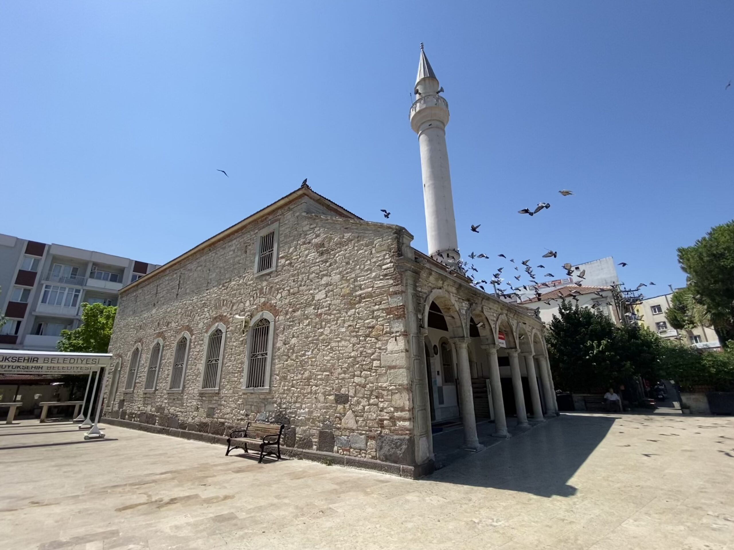 19. yüzyılda iki yan ve bir ana nefli kilise olarak inşa edilen yapı mübadelenin ardından camiye çevrilmiştir. Çan kulesi yıkılarak aynı temel üzerine minare inşa edilmiştir.