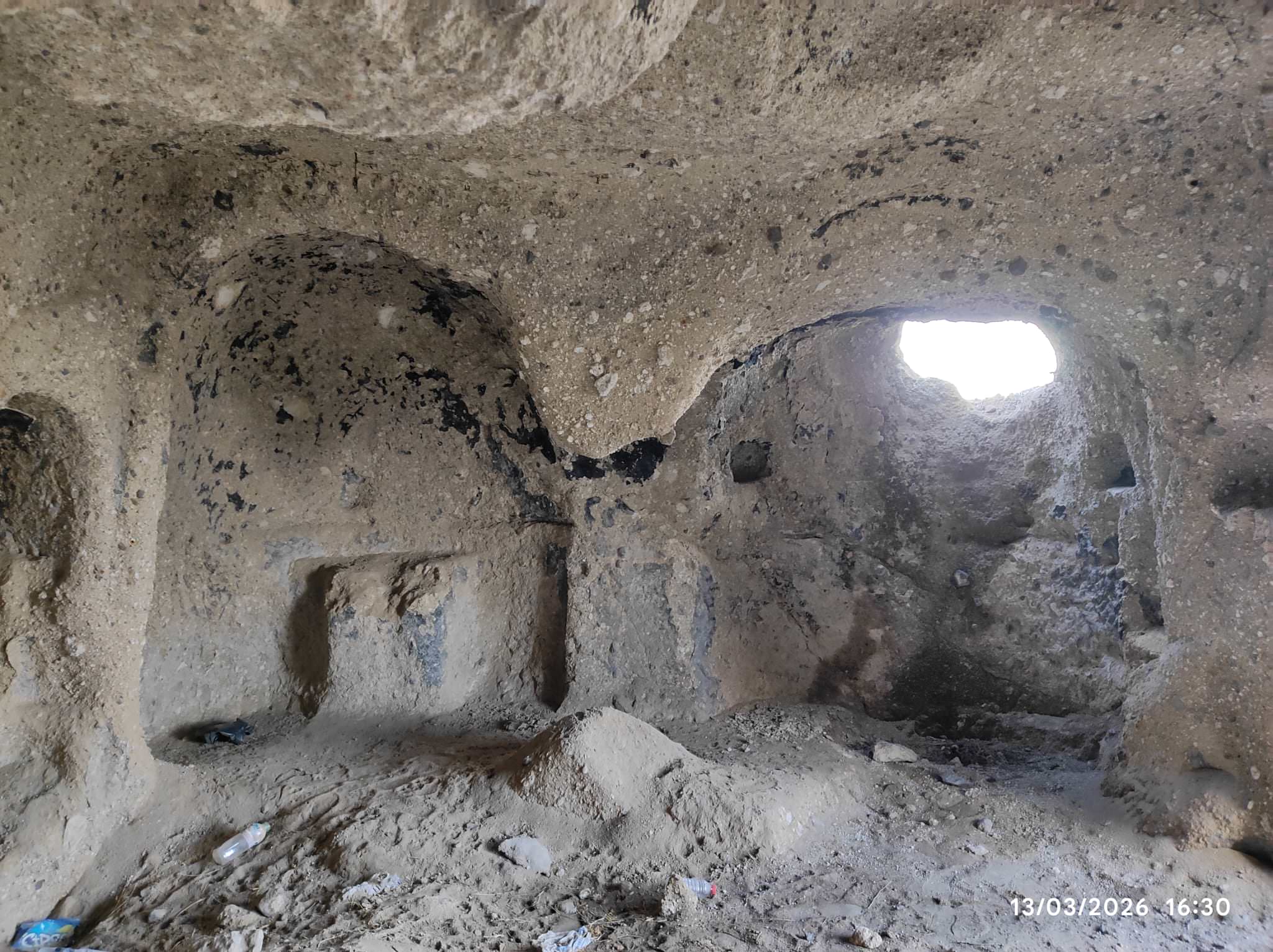 Ana apsisin kuzeyinde yer alan yan apsiste, kayanın oyulmasıyla biçimlendirilmiş oturma sekisi (synthronon) bulunmaktadır. Kuzey ve batı duvarlarında farklı boyutlarda yuvarlak kemerli nişler yer alır. İç mekân duvarlarında alçı kalıntıları, burada fresklerin bulunduğunu göstermektedir. Ancak söz konusu freskler zamanla büyük ölçüde deforme olduğundan, mevcut hâliyle ikonografi ya da üslup hakkında bir değerlendirme yapılamamaktadır. Kilisenin üst katında ise kaya oyma tekniğiyle oluşturulmuş iki mekân mevcuttur.