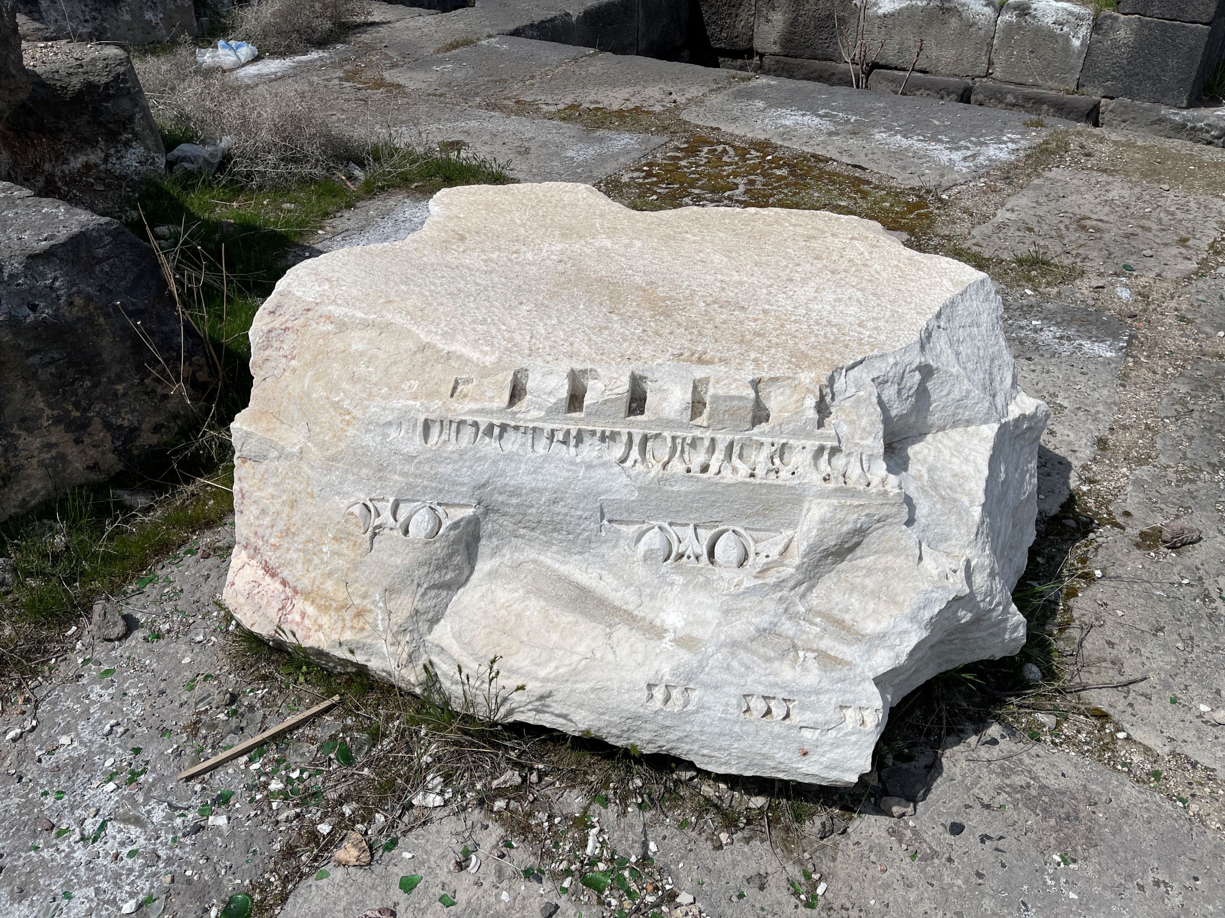 Doğu-batı yönünde uzanan yapı kalıntısının asıl girişi batı yöndedir. Doğu cephesinde ise sonraki dönemlerde açılmış küçük bir giriş bulunmaktadır. Günümüzde yapı, podyum-stylobat seviyesinde korunmuştur. Dış cephesinin ve üst örtüsünün stylobat seviyesinden itibaren tamamen mermer malzemeyle, podyumunun ise kesme taş malzemeyle yapıldığı anlaşılmaktadır. Tapınağın kalıntılarında bazalt taştan yapılmış çok büyük bloklar da görülmektedir. Yapı kalıntısında bulunan mimari bezeme parçaları, üst örtüde yumurta-ok silmeleri ile lotus-palmet sıralarına yer verildiğini göstermektedir. Ayrıca kurtarma kazısında, üst örtüde metoplarda ya da frizlerde heykeltıraşlık eserlerinin bulunduğu, bunların dışında bağımsız heykel ya da heykel gruplarına da yer verildiği tespit edilmiştir.
