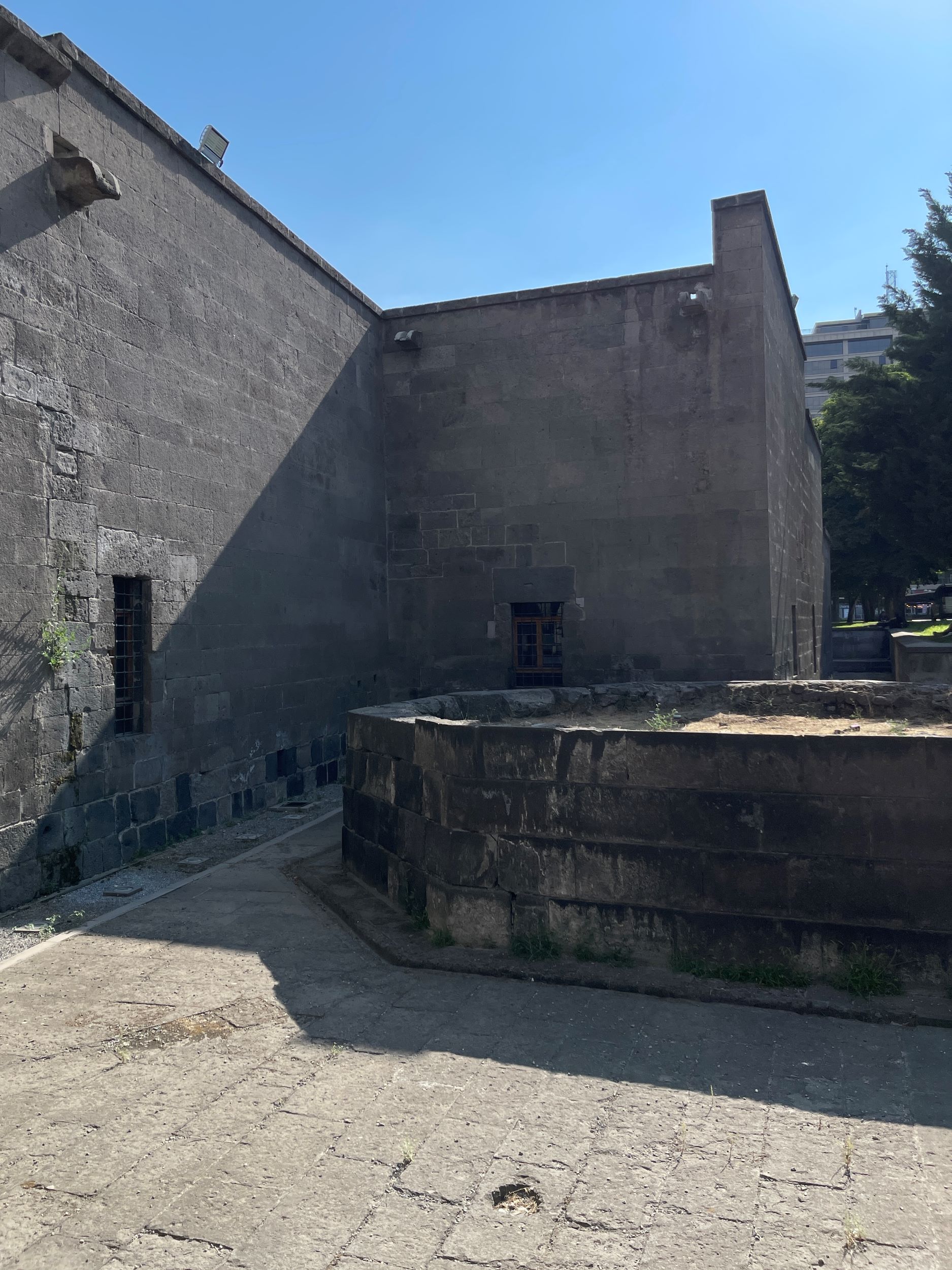1980 yılında yapılan onarım esnasında yapının çevresinde de bir kazı yapılmıştır. Kuzeyde bulunan yedigen kaideli, türbe kaidesine benzeyen yapının altının tamamen toprak olduğu ve mezara ait bir yapıya rastlanmadığı tespit edilmiştir. Yapının üzerindeki toprak açıldığında, burada birçok spiralli künkler ortaya çıkmıştır. Böylece bu yapının kümbet kaidesi değil, şifahaneye suyu getiren ve dağıtan su terazisi olduğu tespit edilmiştir. 1