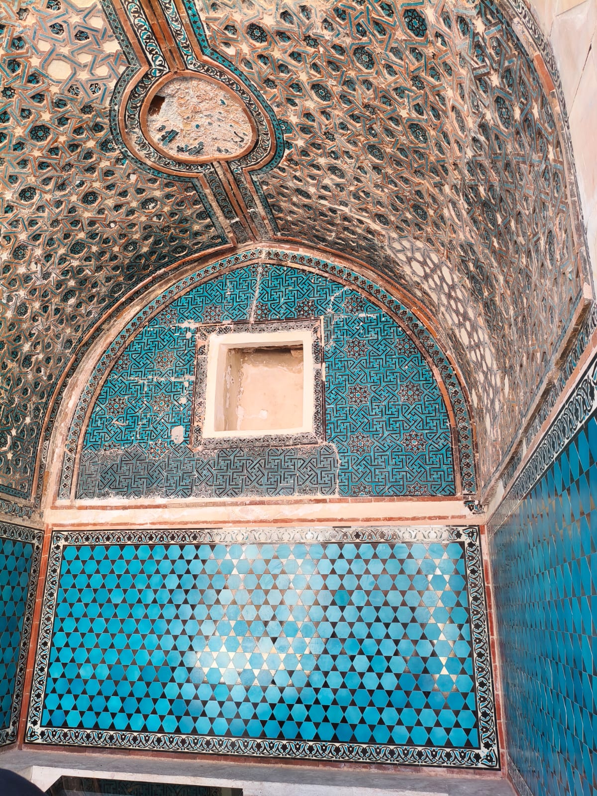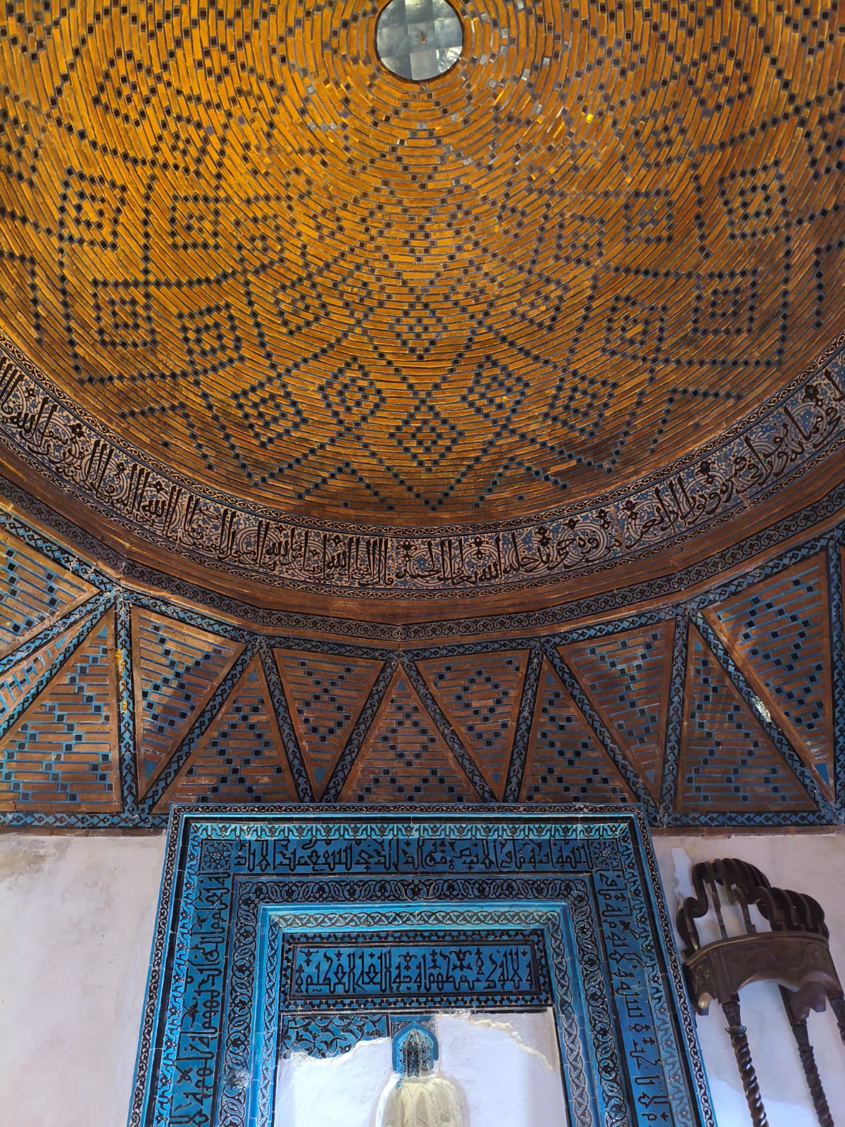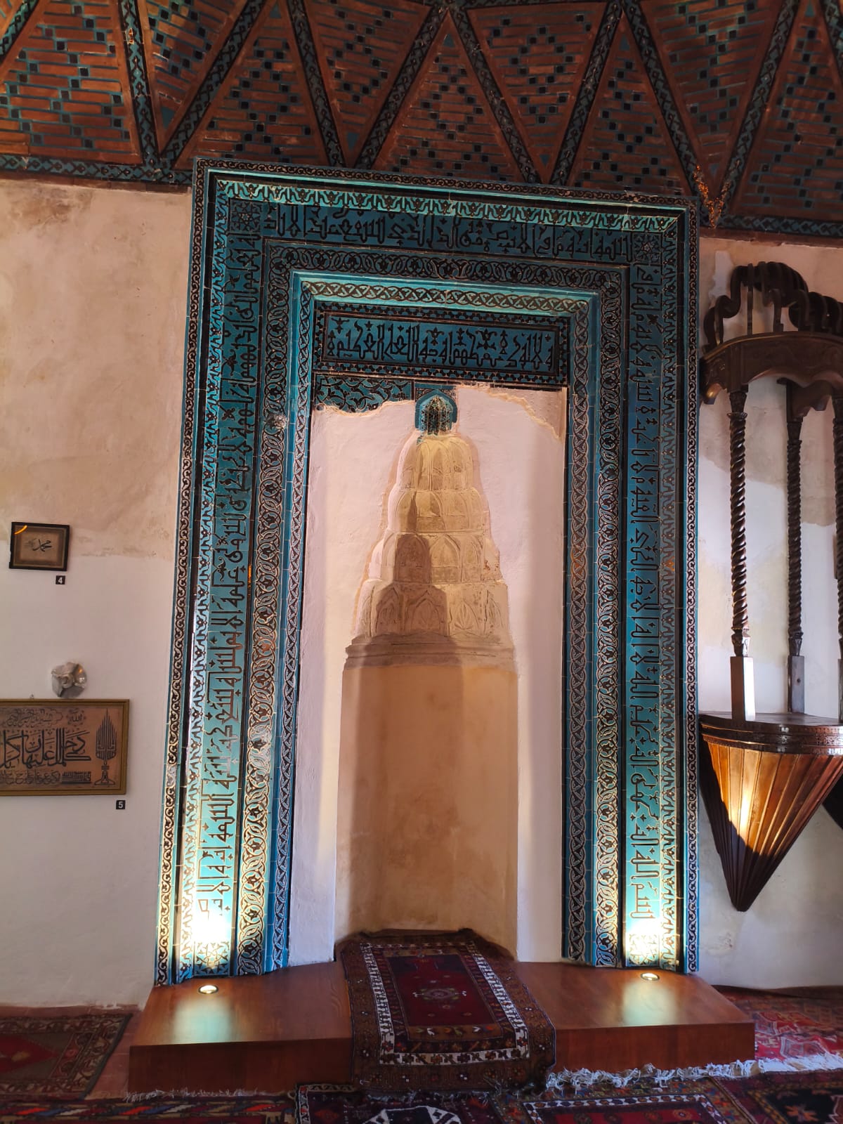 Çini Programı: Yapıya adını veren firuze çiniler, avluyu çevreleyen eyvanlarda, mescit bölümünün kubbesinde ve mihrabında yoğun bir şekilde kullanılmıştır. Bu çini kaplamalar, dönemin renk anlayışını ve sır tekniklerinin gelişmişliğini göstermektedir.