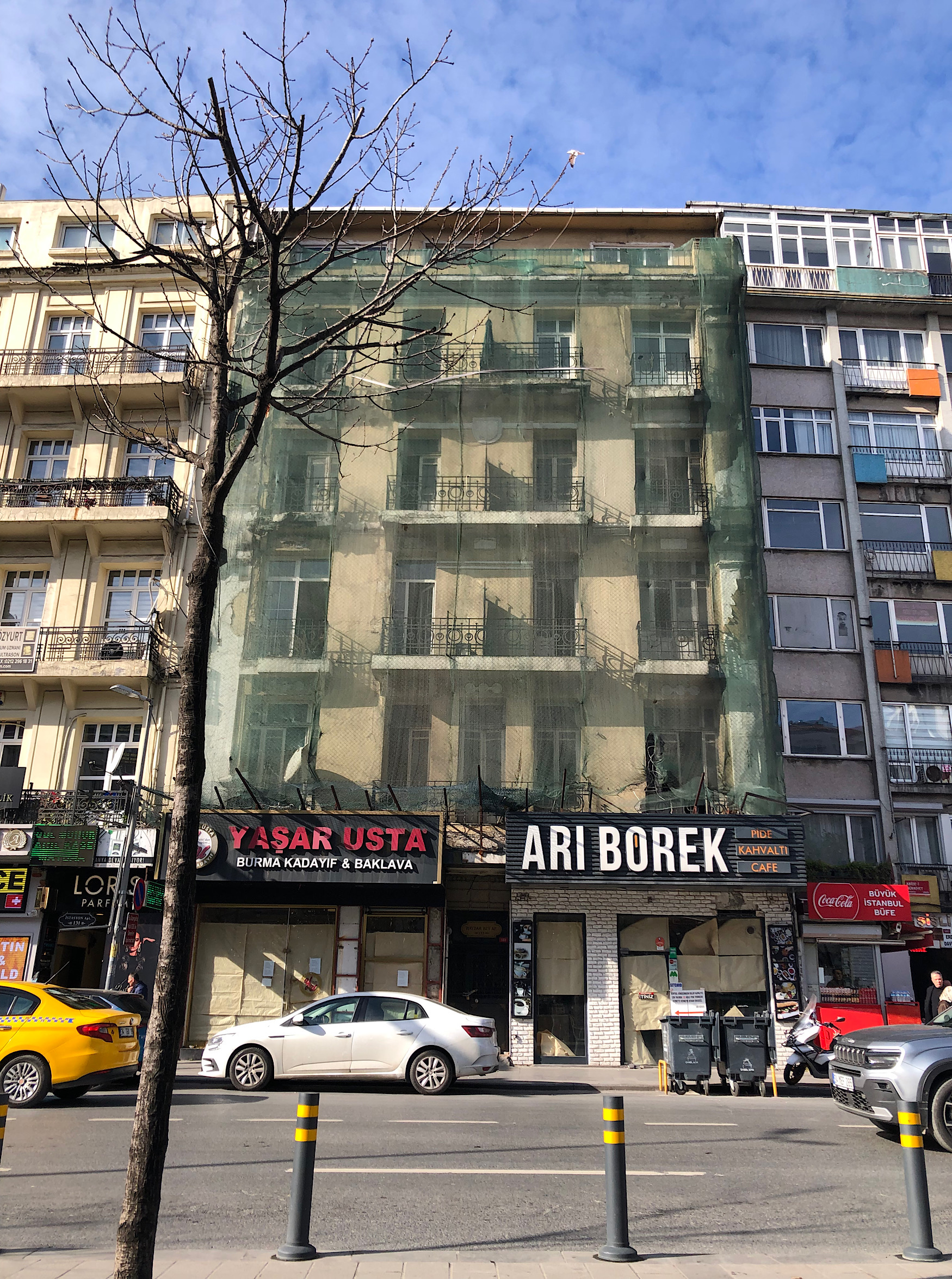 Şişli Meydan’a bakan zemin üzeri beş katlı, simetrik inşa edilmiş Fransız balkonlu tarihi apartmandır.