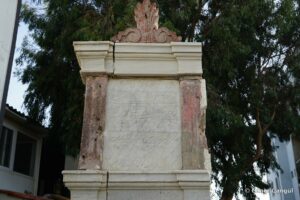 Mermer plakaları çeşme gövdesinin köşelerindeki kahverengi kesme taştan yapılı köşe profilleri tutmaktadır.