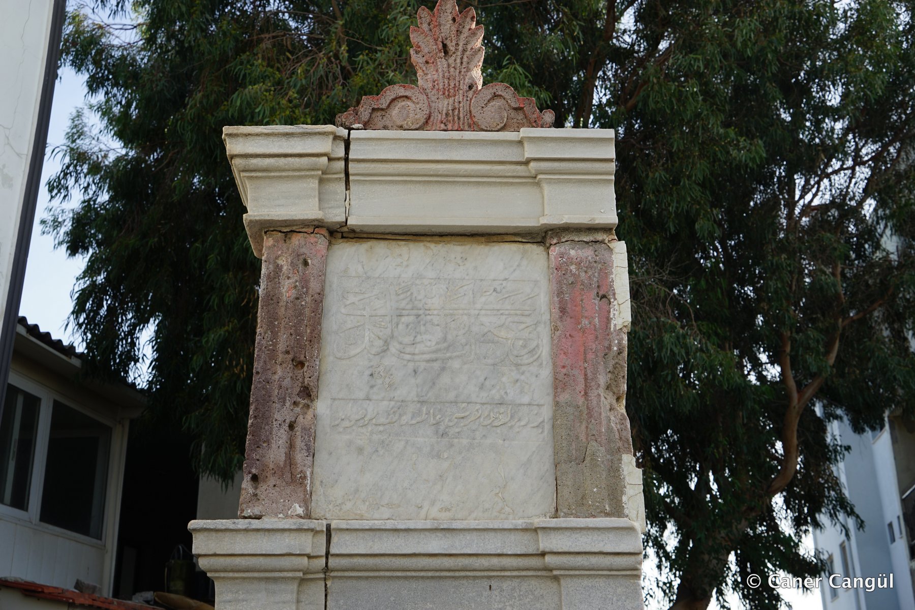 Kitabelerin olduğu ikinci kat üzeride mermer saçak ile korunmuştur.