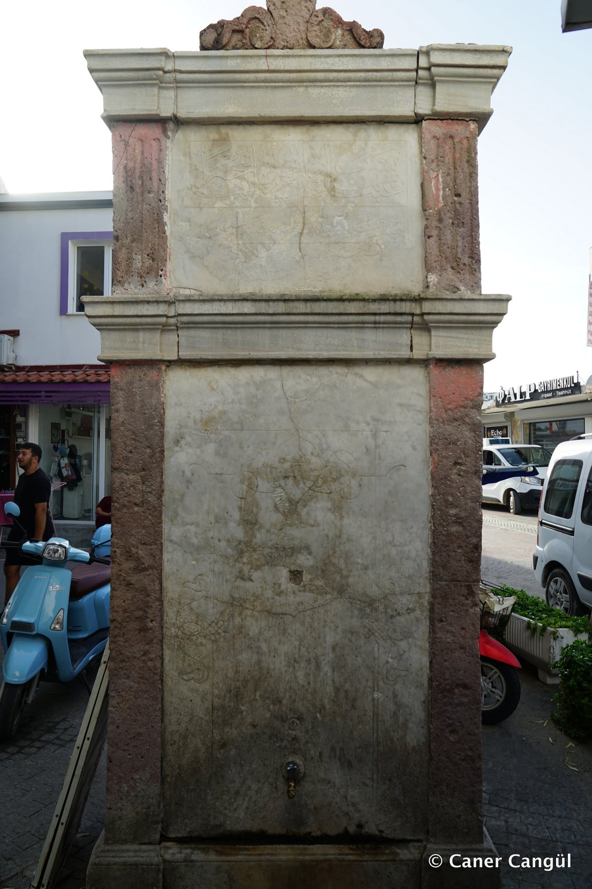 Mordoğan’ın çarşı merkezinde Osmanlı Döneminden kalan 2 katlı 4 yüzlü çeşmenin barok karakterli süslemeleri ve çeşmenin formuyla bölgedeki diğer çeşmelerden ayrı bir özelliğe sahiptir.