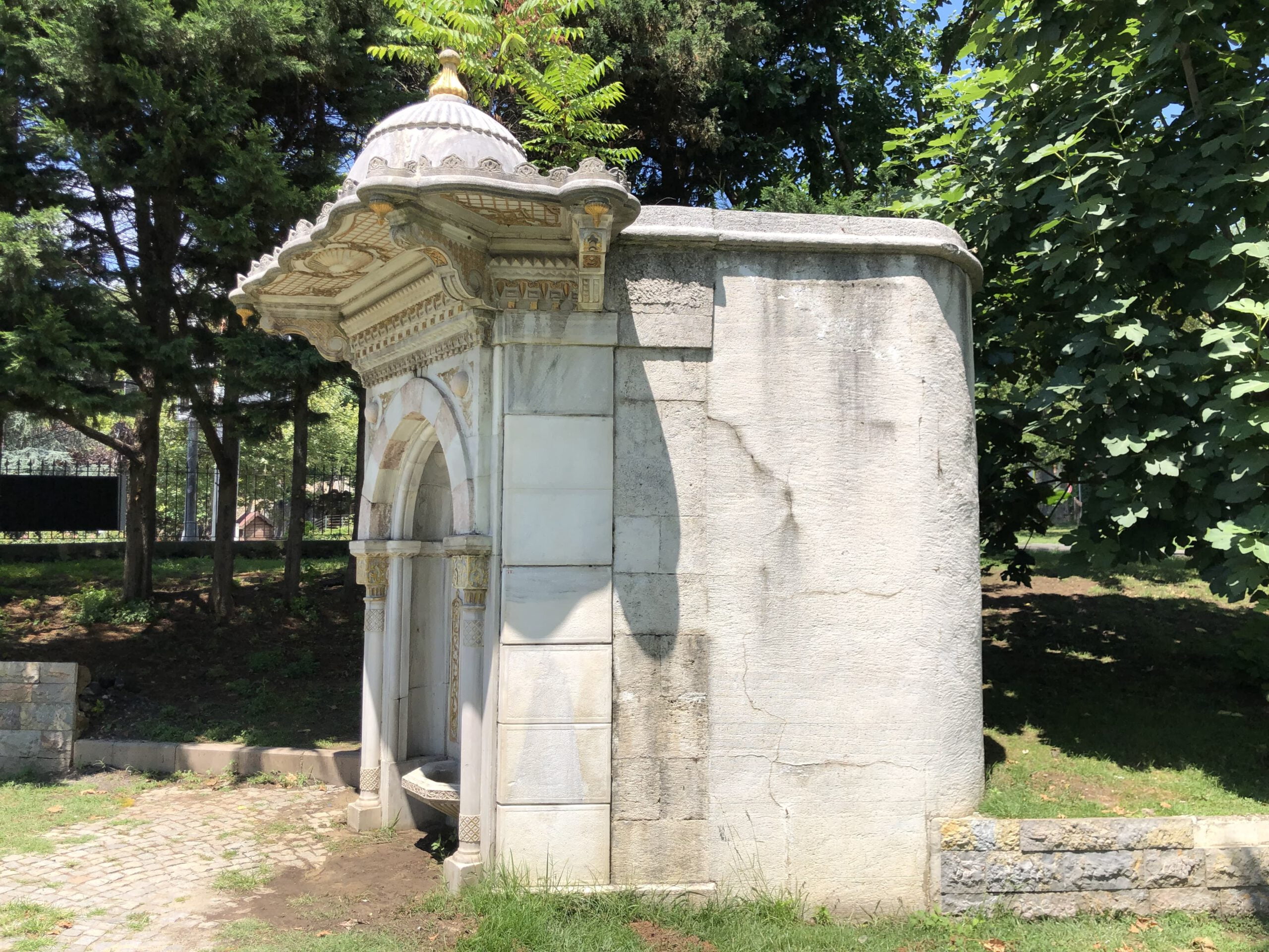 Çeşmenin 1326 tarihli celi sülüs hatla yazılmış ayet kitabesi Ahmed Ref’et Efendi’nin hattıdır.