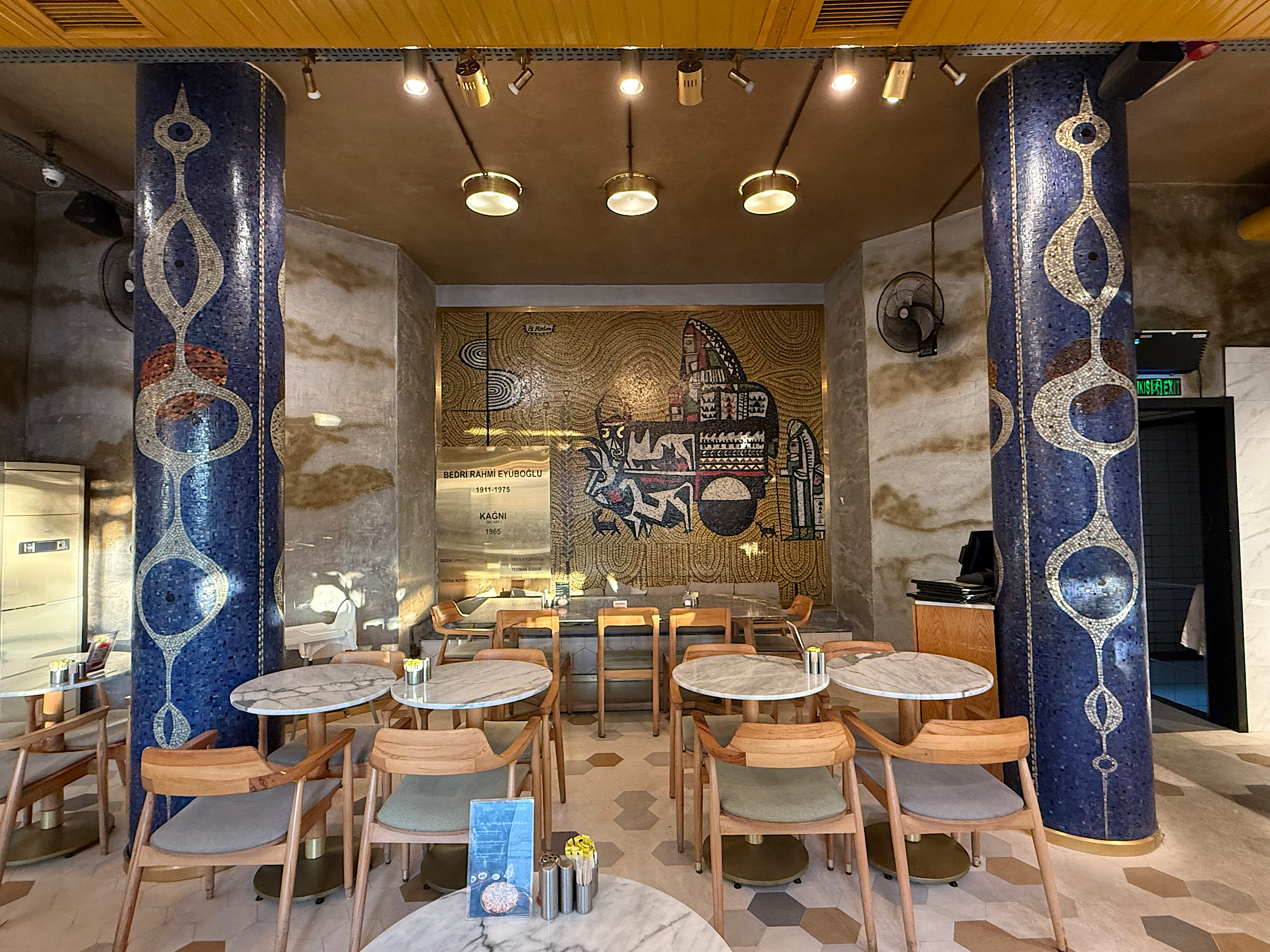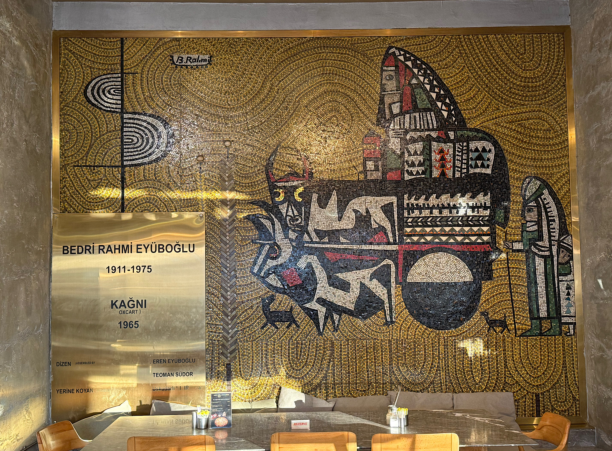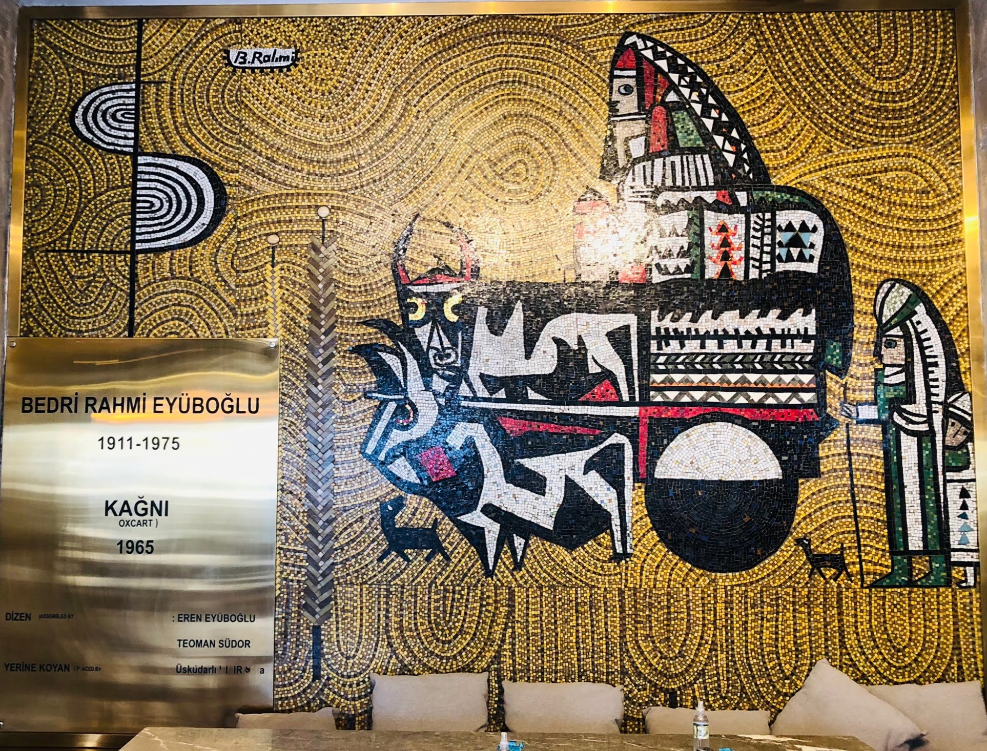 Bedri Rahmi Eyüboğlu’nun 1965’te yaptığı ve Karaköy Meydanı’ndaki Aksu İşhanı’nın zemin katındaki bir dükkanın içine yerleştirilen mozaik panosudur. Önündeki sütunlar da mozaik desenle kaplanmıştır. Aynı işhanının meydana bakan dış cephesinde de Bedri Rahmi Eyüboğlu’nun Tatlıcılar Rölyefi bulunmaktadır.