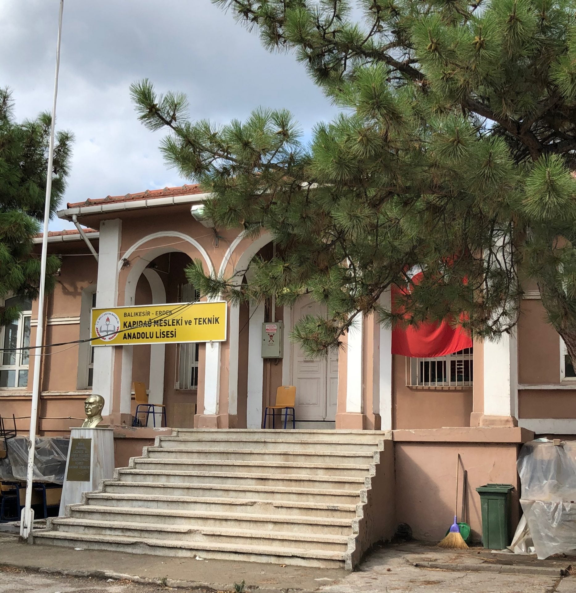 Fener Rum Patriği Bartholomeos’un ziyaret ettiği bina hakkında yeterli kaynak olmamakla birlikte Erdek Rum Piskoposluk Merkezi ya da Konutu olduğu düşünülmektedir. 19. yy. yapısı bina 1924’ten sonra okula dönüştürülmüştür.