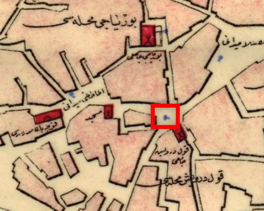 İbrahim Hakkı Konyalı, Poyracı Mescidi’ni anlatırken mescitle aynı sırada (sokakta) Acı Çeşme adıyla bilinen bir çeşme bulunduğunu belirtmektedir (Konyalı, s.29). Haritanın bu bilgi ışığında incelenmesi sonrası, Kul Derviş Mescidi Çeşmesi ile Acı Çeşme’nin aynı yapılar olabileceği akla gelmektedir (İbrahim Hakkı Konyalı, Acı Çeşme’nin kitabesini yayınlamıştır. Kitabesinden çeşmenin, Hicri 1280, Miladi 1863 tarihinde yapıldığı anlaşılmaktadır. Konyalı, s.29). Günümüzde, belirtilen alanın hemen yakınında önü havuzlu ve kurnalı bir çeşme, binaların bitişiğinde yer almaktadır. Bölgede yıkılan konaklardan birine ait olduğu sanılan bu çeşmenin Kul Derviş Mescidi çeşmesiyle bir bağlantısı yoktur.