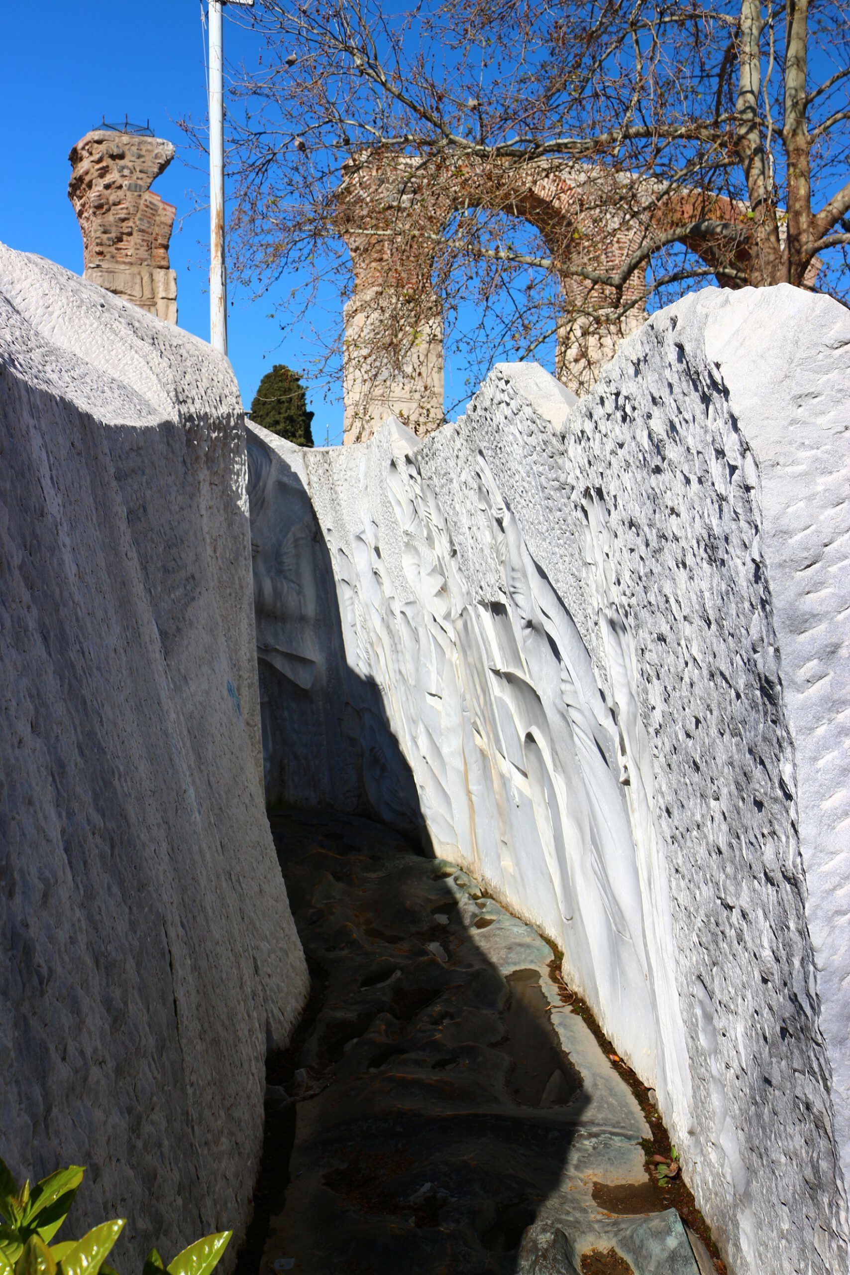 Heykeltraş Mehmet Aksoy’un eseridir. Heykelin izdüşümü her 26 Ağustos’ta Atatürk silüeti şeklinde düşmektedir.