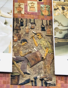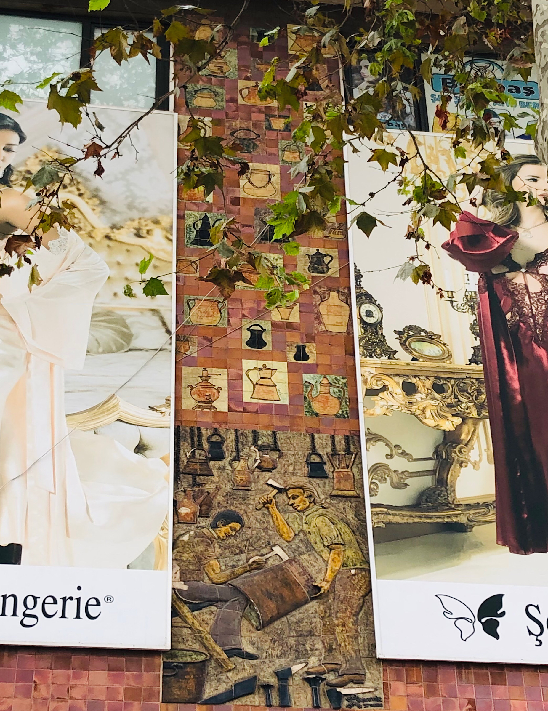Sanatçı Taci Alpaslan’a ait 1984 Taç Seramik marka imzalı seramik pano iş hanının ön cephesinde bulunmaktadır.