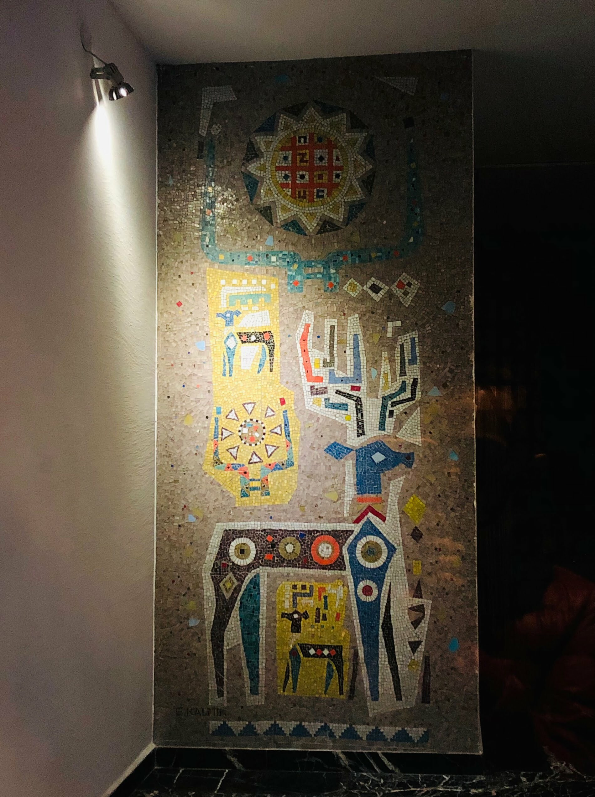 Ressam Ercüment Kalmık’ın 1957 yılında Marmara Apartmanı’nın giriş katında Hitit sanatından ve motiflerinden esinlenerek yaptığı çeşitli soyut mozaik panolar yer almaktadır.