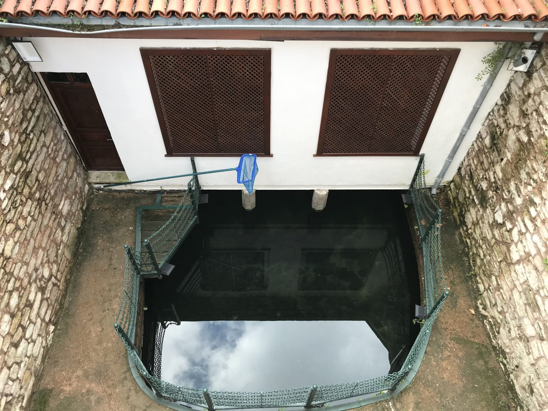 Merkez Efendi Türbesi’nin hemen arkasında 15-20 basamaklı bir merdivenle inilen çilehane, bir 30 metrekarelik bir kuyu üzerine oturtulmuş küçük bir kapı ve benekli penceresinden başka bir şeyi olmayan bir barakadır. Kırmızı balıkların yüzdüğü havuz çevresini dolanan dar bir yol barakayı kuşatır.