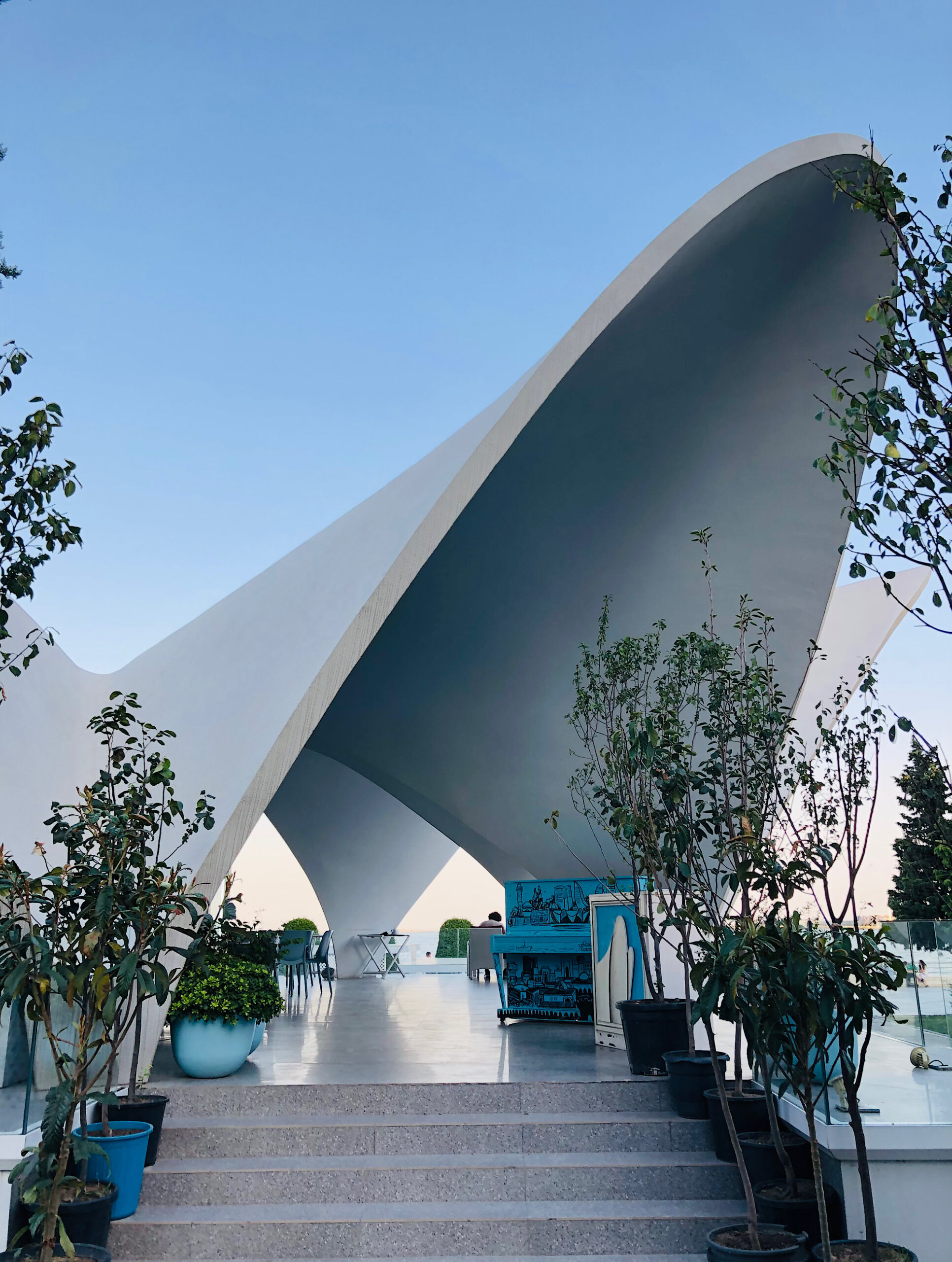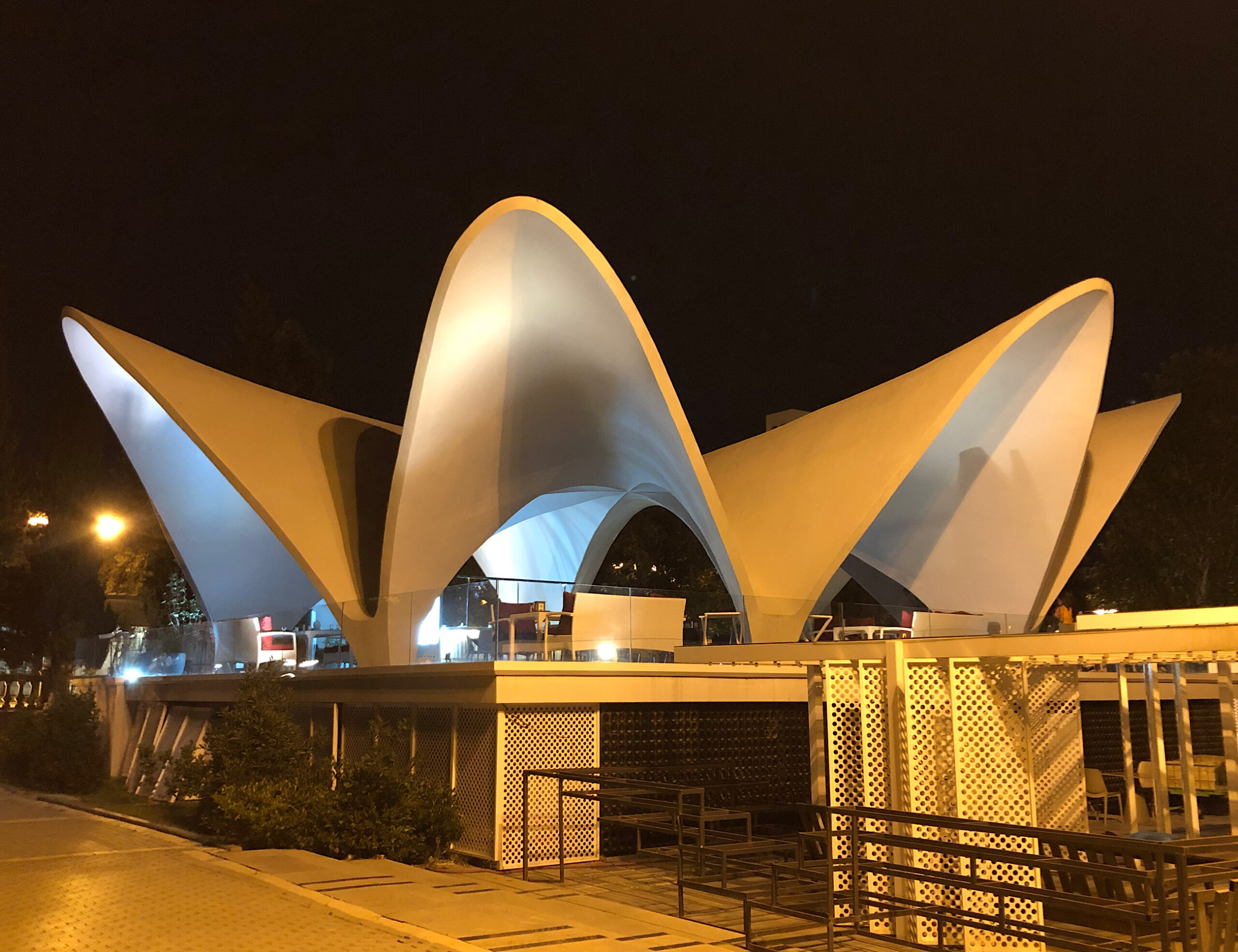 1962’de sahil bulvarında inşa edilen kafe yapısının mimarı Vadim Shulik’tir. Yapıyı yaptıran Aliş Lemberansky bir yurt dışı seyahatinde fotoğrafını gördüğü Meksiko şehrindeki 1958 yapımı Felix Candela eseri Los Manantiales yapısından etkilenerek benzer tasarımı sipariş etmiştir. Yapım işini ise N.Nikonov’un üstlendiği modern yapı betonarme kabuk örtü sistemi ile Bakü’nün ikonik yapıları arasındadır.