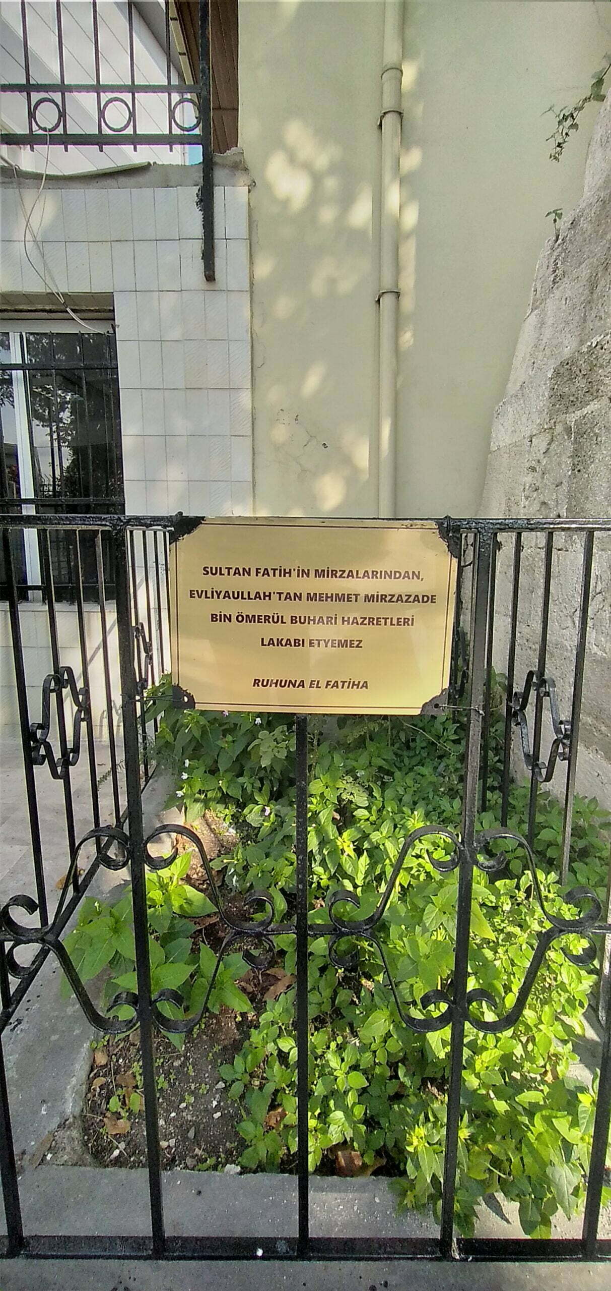 Fatih Sultan Mehmet’in fetih ordusundan olan Şeyh Mirza Baba ibni Ömerü’l-Buhari, Etyemez Tekkesi Mescidi‘nin banisidir. Kabri mescidin haziresindeydi. Mescit hastane istimlaki sebebiyle yıktırılınca buradaki bazı mezarlar Bayezid-i Cedid Camii haziresine nakledildi. Mirza Baba kabri de bunlardandır.