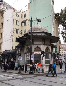 Bir tarafında çeşme, diğer tarafında ise muvakkithane bulunan altıgen planlı sebil, beş pencereli ve dökme demir şebekelidir.