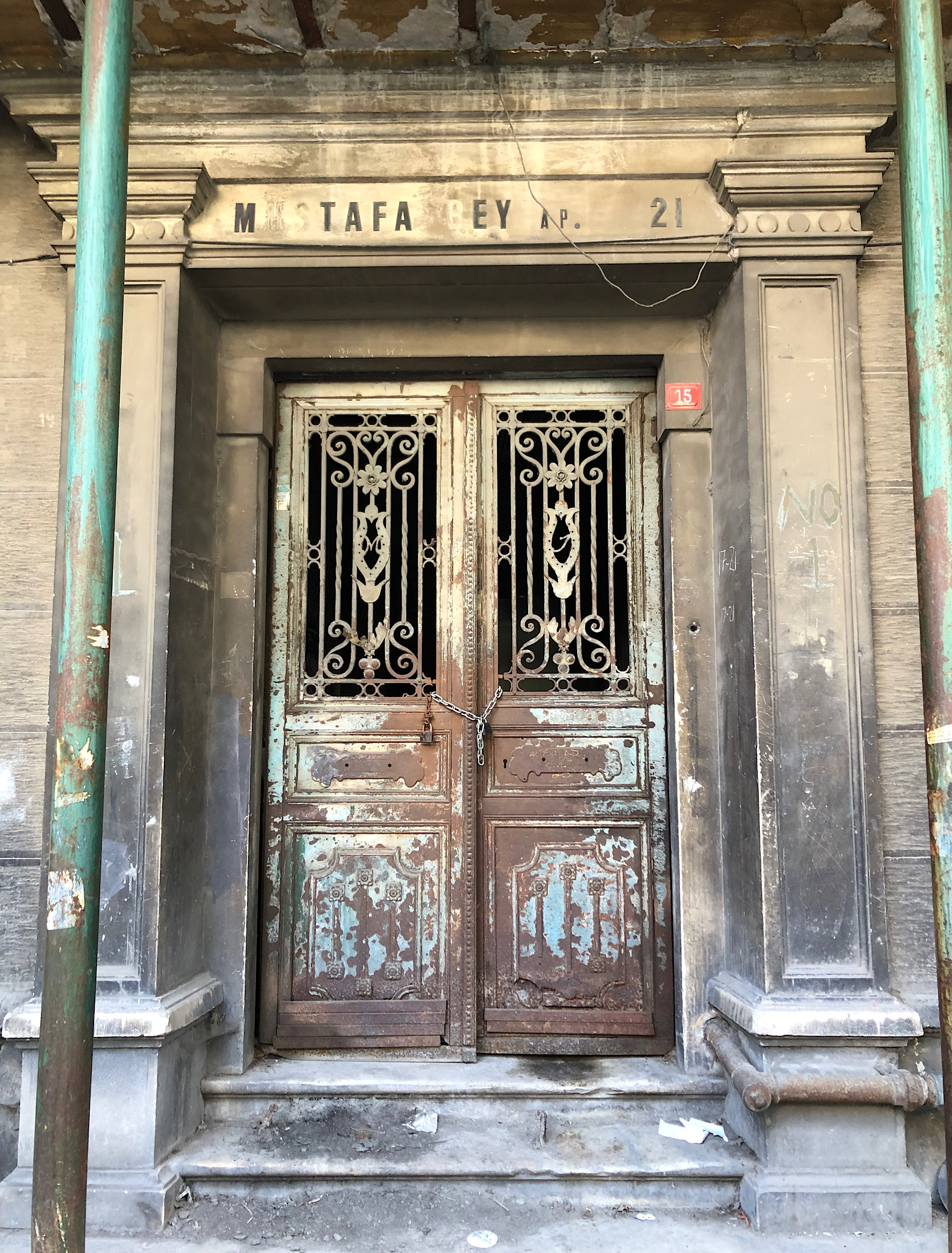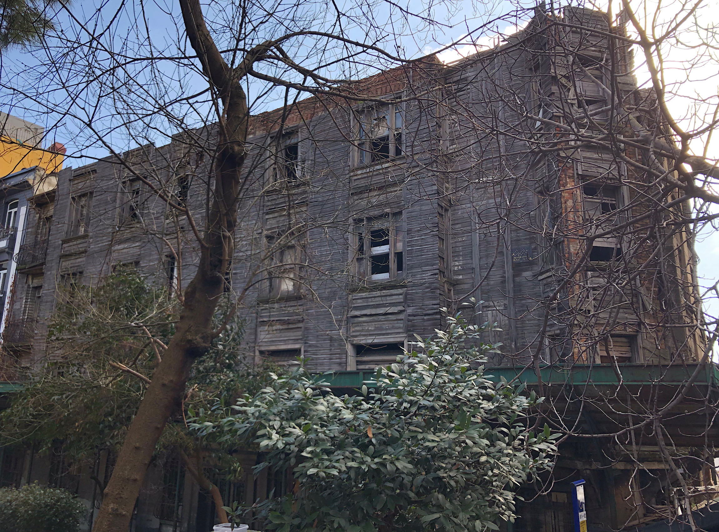 Pervititch 1926 Sigorta Haritasında İsmail Mustafa Apartmanı ismiyle yer alan apartmanın mimarı Kosmas Karagiannis’tir. Yapı beş katlı kâgir olup üst katlar ahşap kaplamadır. Uzun yıllardır metruk ve yıpranmış durumdadır.