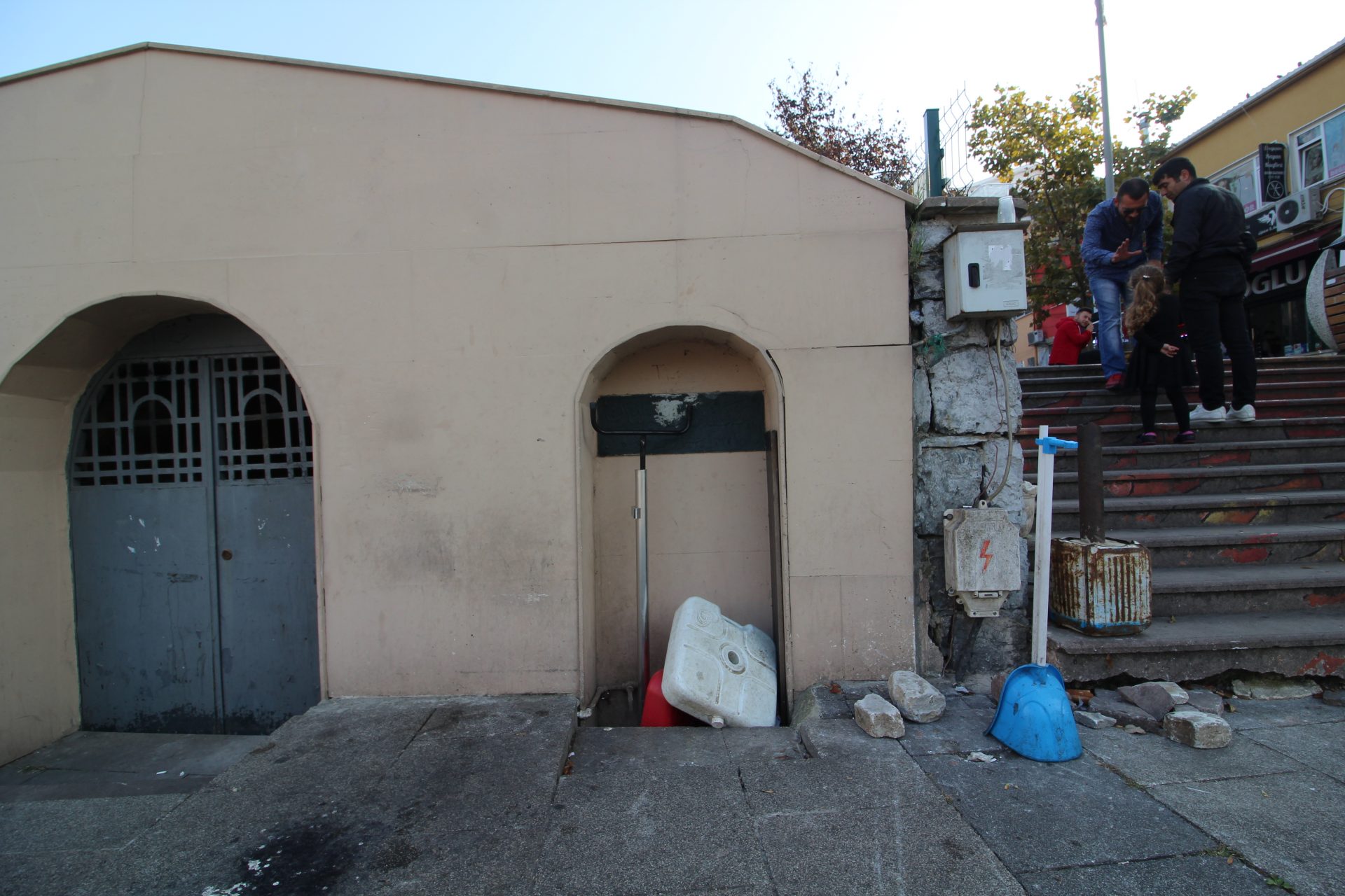 Çukurda kalan çeşmeye ait yuvarlak kemerli nişin içinde yer alan ayna taşı ve üstünde kitabesi yer almaktadır. Çeşmenin yanında yer alan kapı, parkın arka tarafında kalan kiliseye giden bir tüneldir.