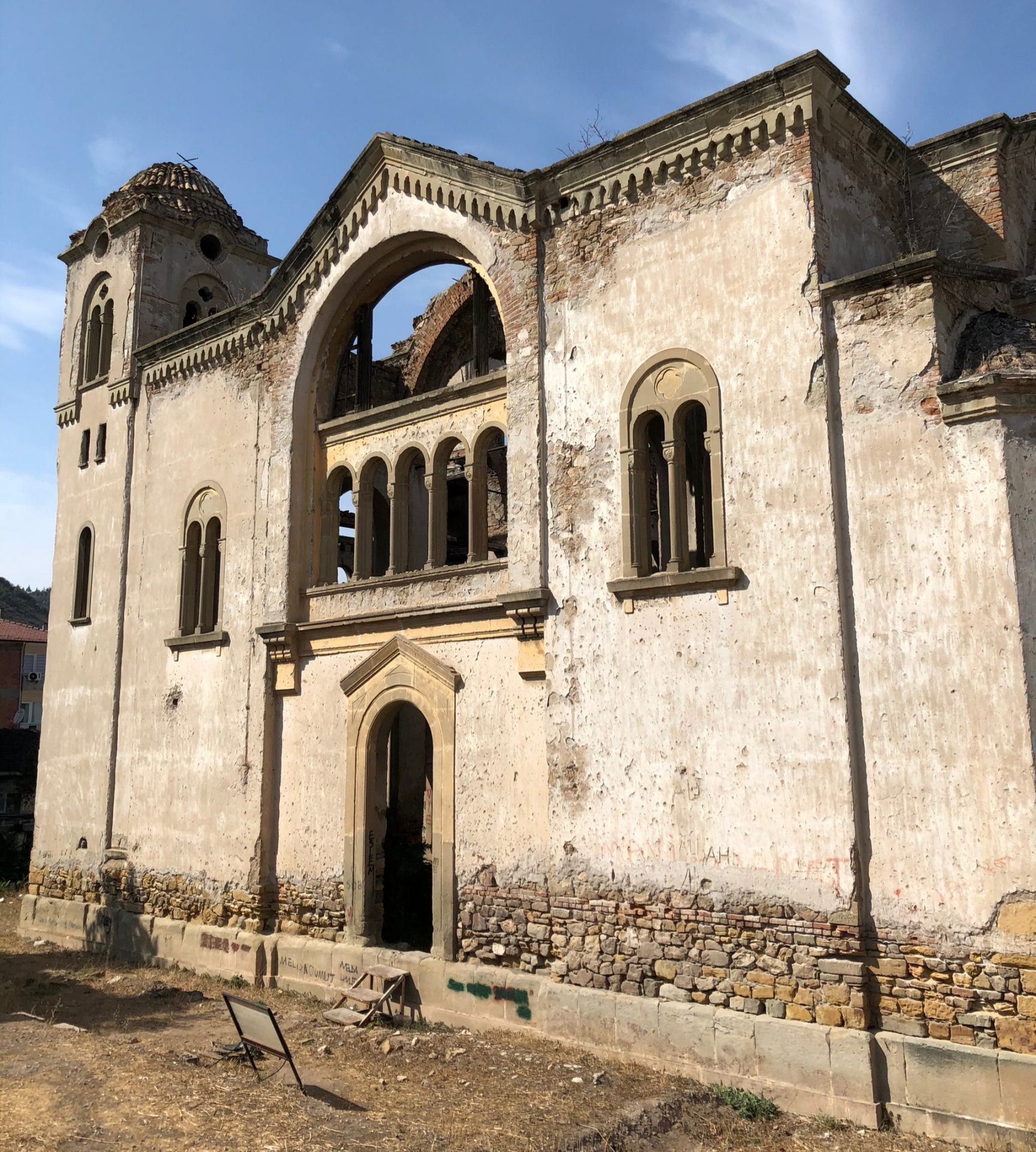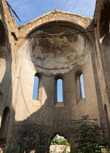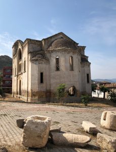 İki adet çan kulesi Avrupa gotik mimarinin izlerini taşır. Çatı ve kubbe örtüsü tamamen çökmüştür. Herhangi bir duvar resmine rastlanmamıştır. Üç nefli ve Yunan haçı planlıdır. 19.yy. sonu ya da 20.yy. başında inşa edildiği tahmin edilen yapı 1922’den beri kullanılmamaktadır.
