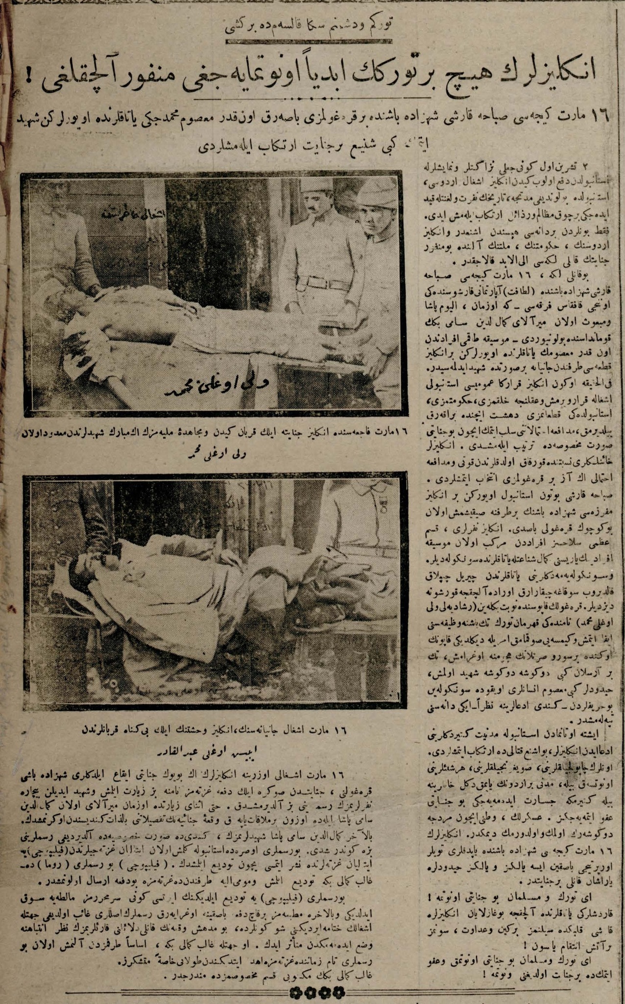 13 Kasım 1918’den beri işgal altındaki İstanbul, 16 Mart 1920’de ikinci bir işgal eylemine şahit olmuştu. Baskından sonra, olay yerine ilk giren Tevhid-i Efkâr Gazetesi muhabirleri, şehitlerin resimlerini çekmiş, 10. Kafkas Tümen Kumandanı Yarbay Kemaleddin Sami Bey ile bir görmüş, cinayetin tafsilatı hakkında bilgi almışlardı. Ayrıca Kemaleddin Sami Bey, kendisinin özel olarak çektirdiği şehit resimlerini daha sonra Tevhid-i Efkâr Gazetesi’ne vermiş, çekilen bu fotoğraflar çoğaltılarak Anadolu’ya da gönderilmişti.