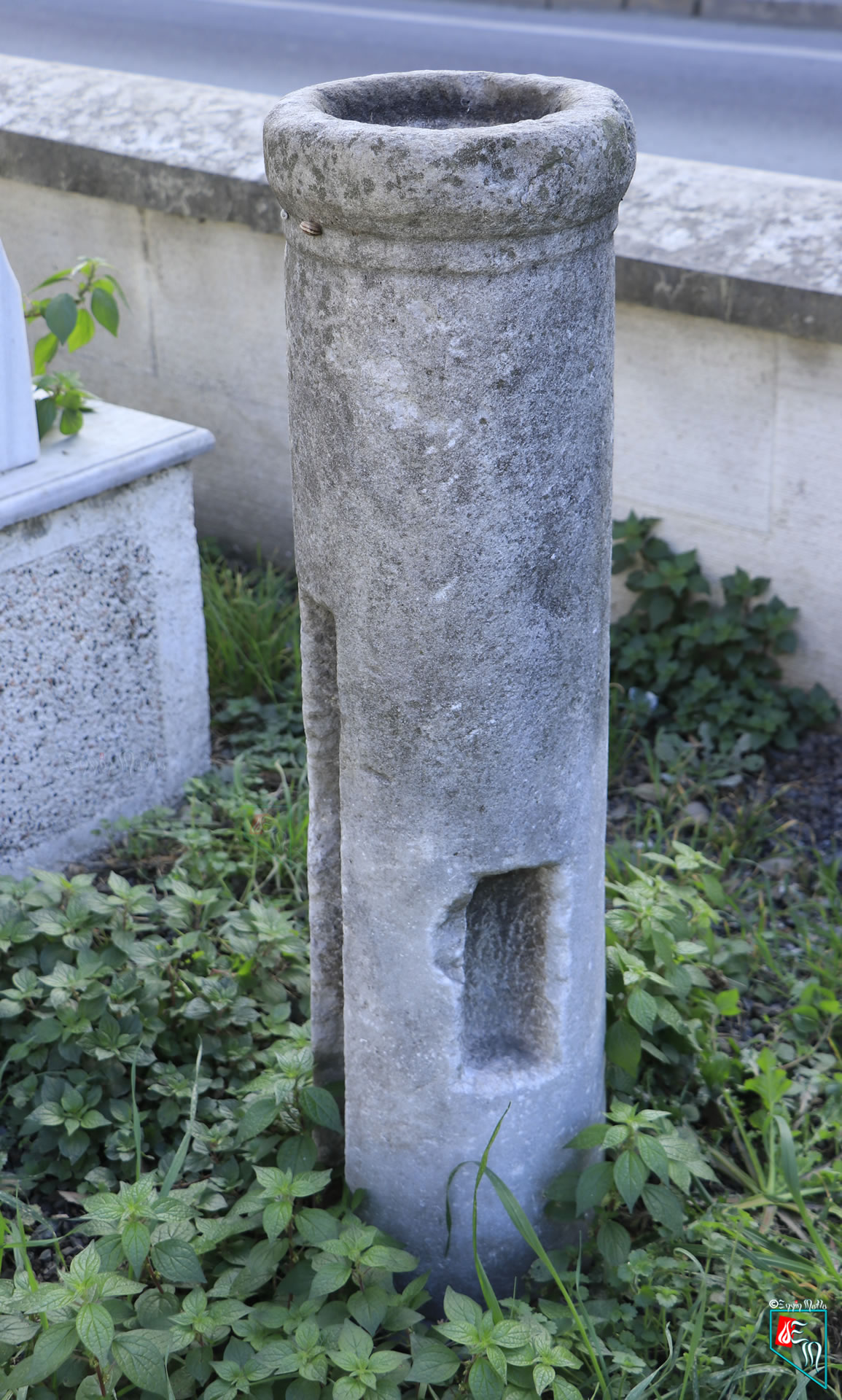 Seyyid Nizam Camii Haziresi’nin, yolun ortasında kalan bölümünde bulunan sadaka taşında çocuklar da düşünülmüş olup hem üst kısmında hem de yan tarafında sadaka kovuğu mevcuttur.1
