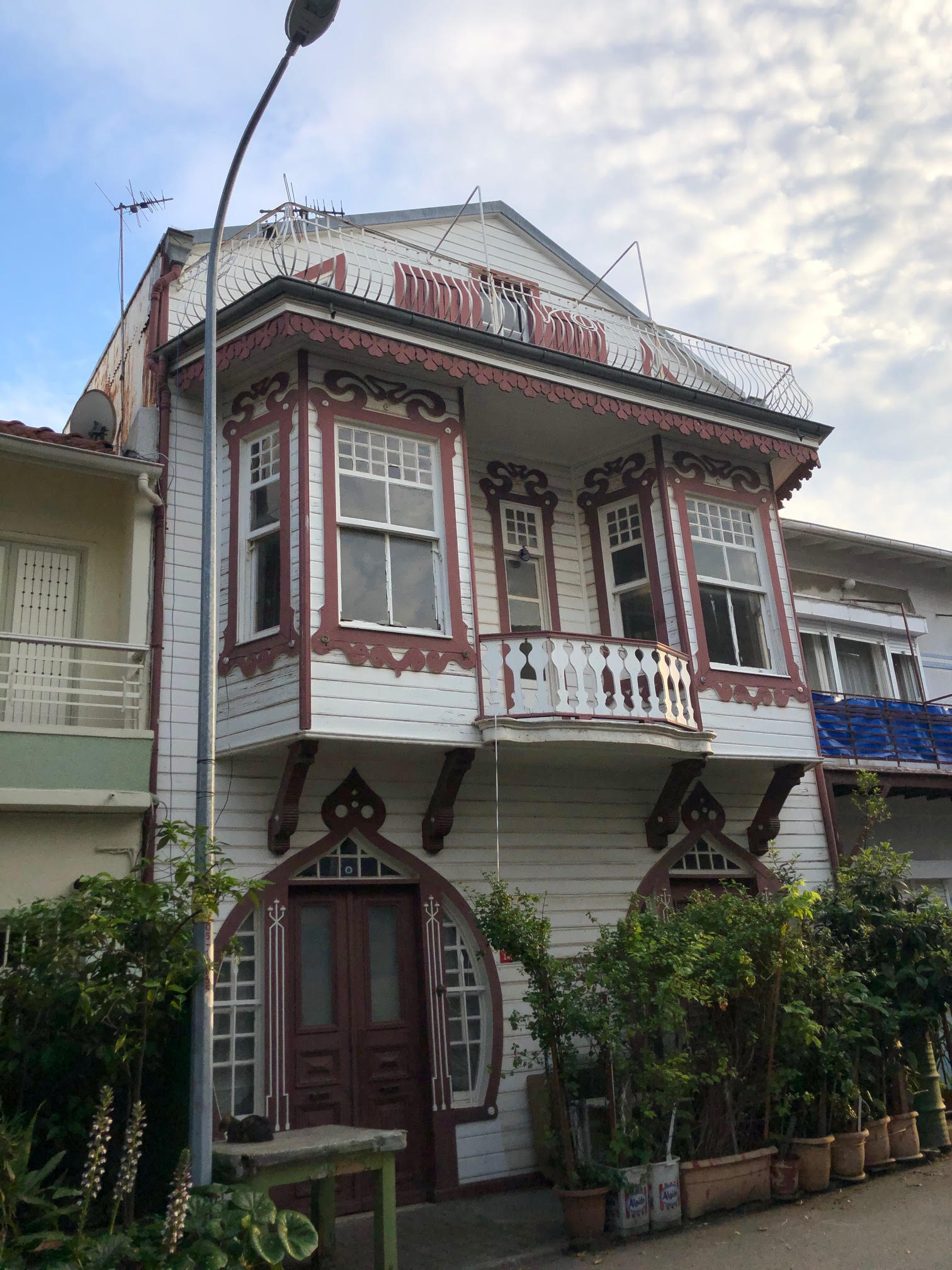 Haralambos tarafından yaptırılmış olan iki katlı, bahçeli, ahşap evlerin ön cephelerindeki cumba ve saçak süslemeleri göz alıcı güzelliktedir.