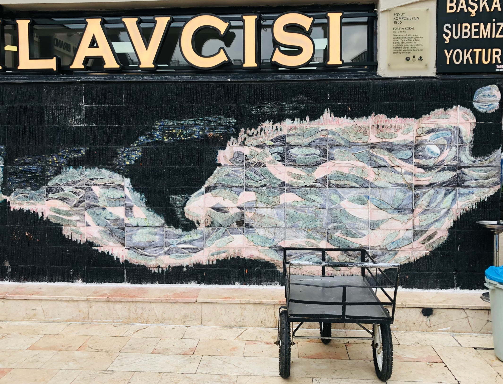 Sanatçı Füreya Koral’ın 1965 yılında yaptığı İ.M.Ç 1.Blok’ta yer alan romantizm temalı, aşkı, sevinci, mutluluğu anlattığı seramik panosudur.
