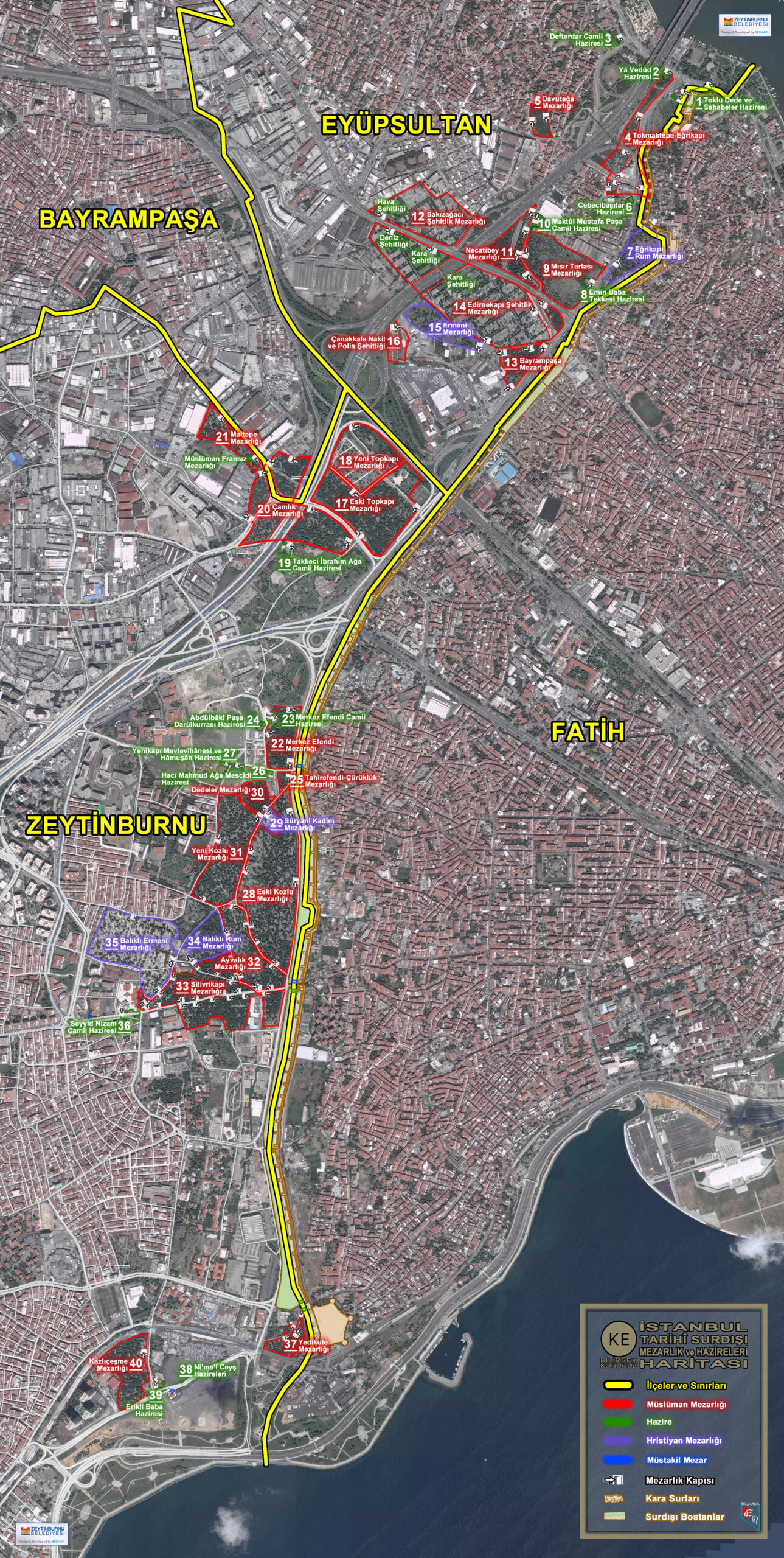 İstanbul’un Surdışı bölgesinde; bir kısmı Zeytinburnu, bir kısmı Fatih İlçesi sınırları içerisinde kalan tarihi niteliğe sahip Ni’me’l Ceyş kabirleri ile müstakil mezarlar bulunmaktadır. Bunlar; Kazlıçeşme Fetih Camii avlusunda kime ait olduğu bilinmeyen bir kabir, Kazlıçeşme Fetih Camii karşısında adıyla anılan türbede Nimelceyş’ten Derya-i Ali Baba kabri, Kazlıçeşme’de Nimelceyş’ten Yedi Şehitler Haziresi’nde 7 kabir, Yedikule Kapısı girişinde sağ tarafta Nimelceyş’ten Ahmet Usta kabri, sol tarafta Nimelceyş’ten kim olduğu kesin bilinmeyen bir kabir, Silivrikapı girişinde sağ tarafta Nimelceyş’ten Elekli Dede kabri, Silivrikapı girişinde sol tarafta Seyyid Mehmed Haydar Dede kabri, Seyyid Nizam Camii Haziresi’nde Nimelceyş’ten Topçu Başı Esed Ağa kabri, Mevlanakapı girişinde sol tarafta İdris Pehlivan Türbesi’nde iki kabir bulunmaktadır.