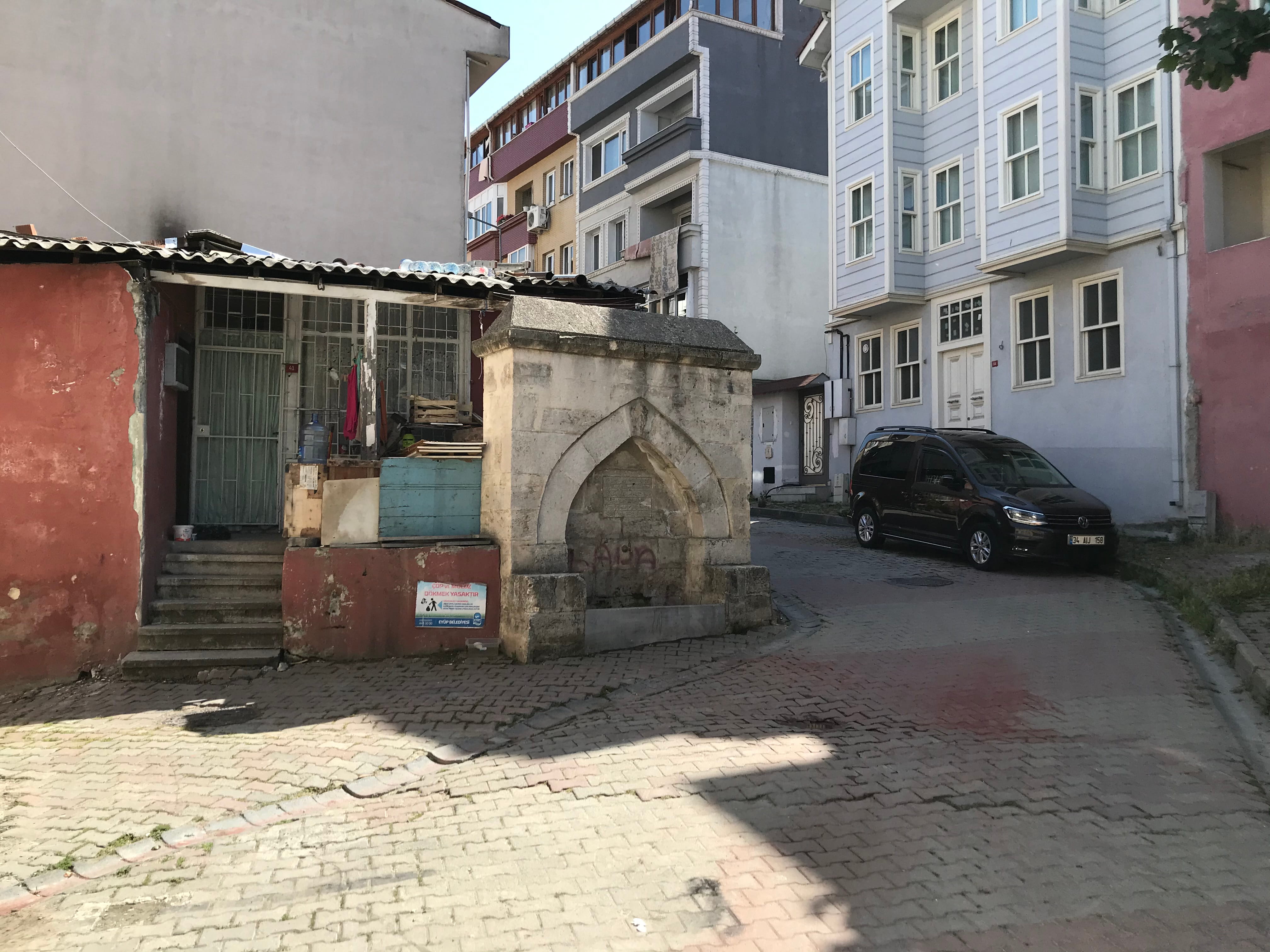 Eyüp’te Vezir Tekkesi caddesinde (No:41 önü) kesme taştan klâsik tarzda yapılmış olan bu çeşmenin şekli bozulmuş taşları kat kat kireçle örtülmüş, kitabesi okunamaz hale gelmiş, teknesi çukura kalmıştır.